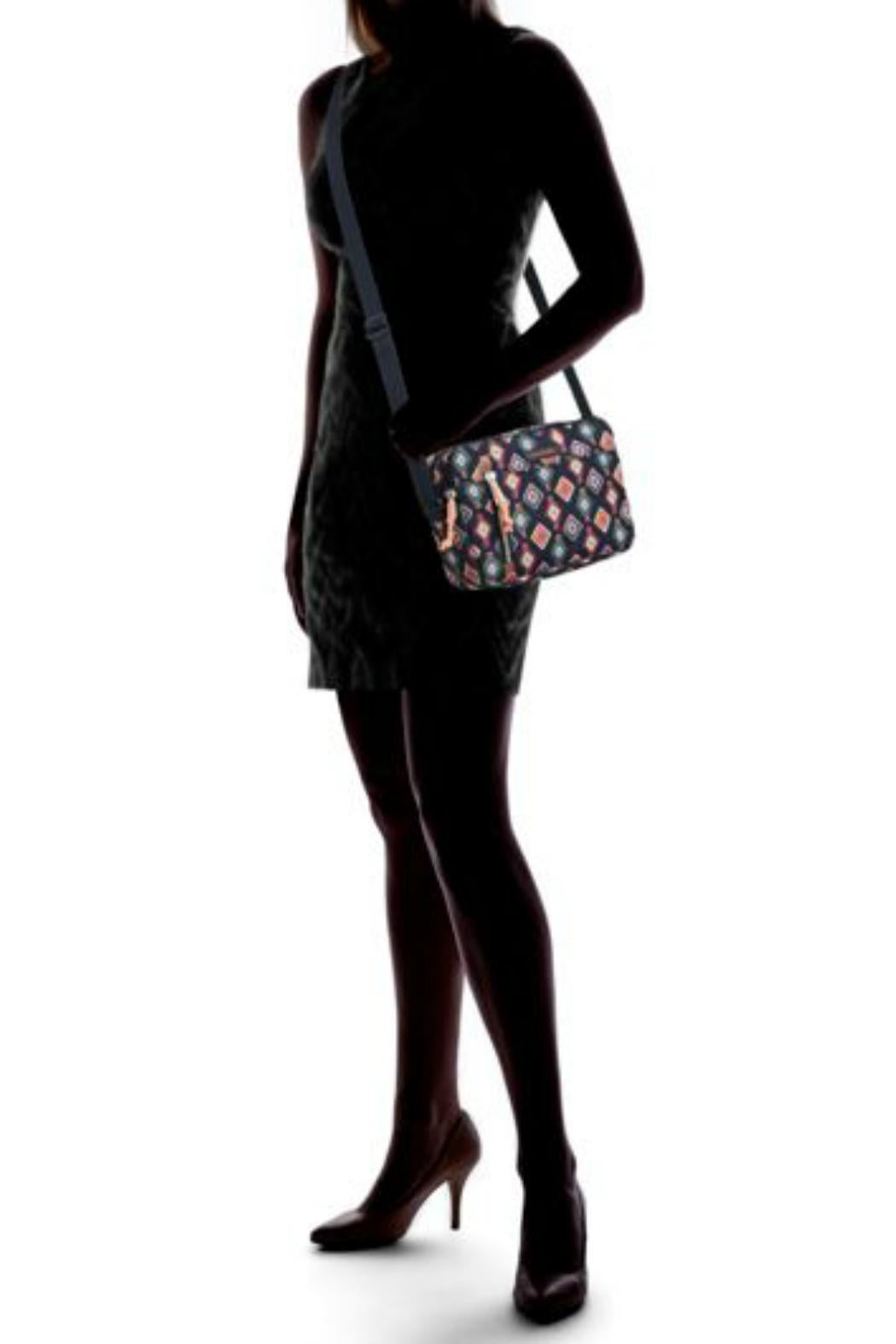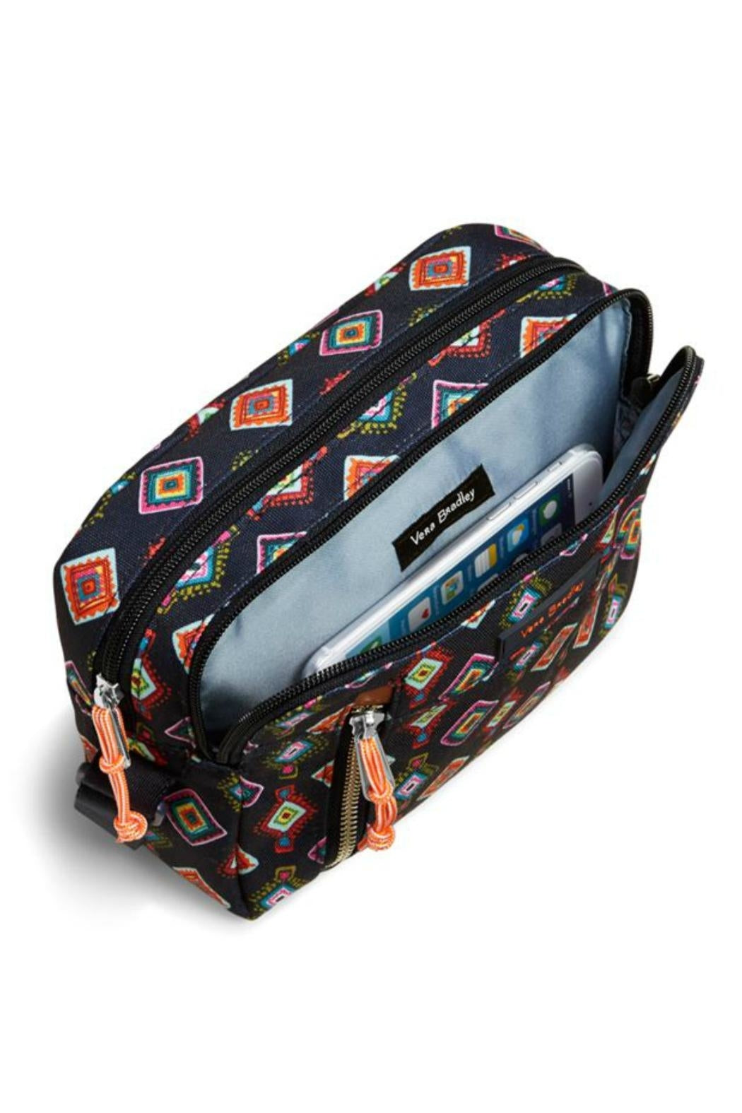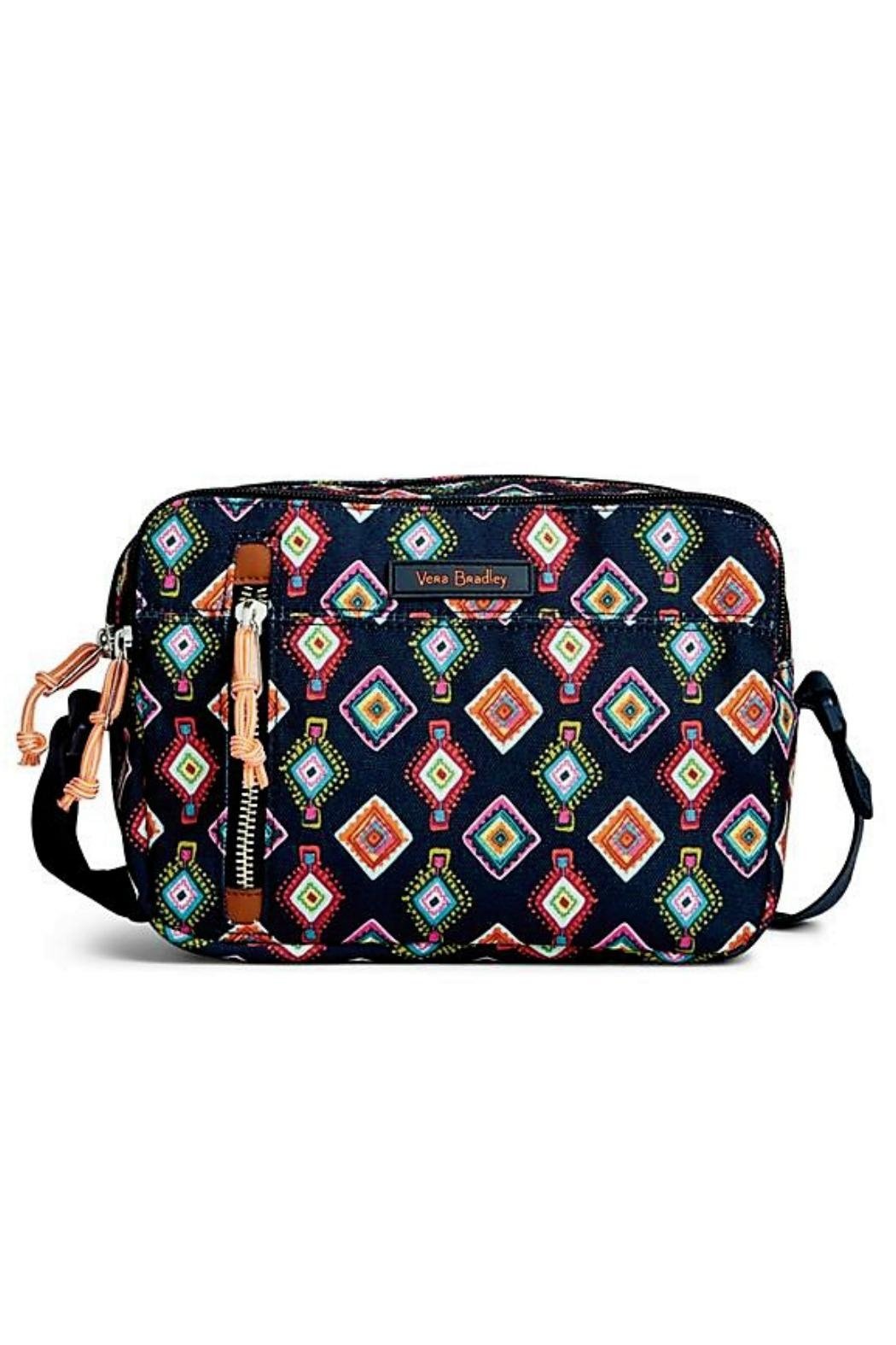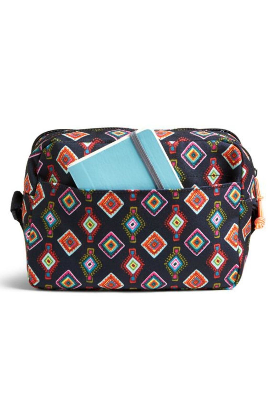 Here is the Vera Bradley Lighten Up "On The Horizon" Crossbody in the Mini Medallions pattern. Some days are busy days and that's when a perfect crossbody bag can be a lifesaver. Having your hands free makes getting everything else done a little simpler. So you might as well get it done with style! Lighten Up fabrication is lightweight, durable and water-repellent with a finish that is soft to the touch. Provides RFID protection for credit and debit cards. Exterior features one zip and one slip pocket. Interior features one slip and six card pockets. Zip closure. Find other accessories in the Mini Medallions pattern on the "Mimi's Gift Gallery" boutique page. Dimensions 8 ½" w x 6" h x 3 ¼" d with 56" adjustable strap
