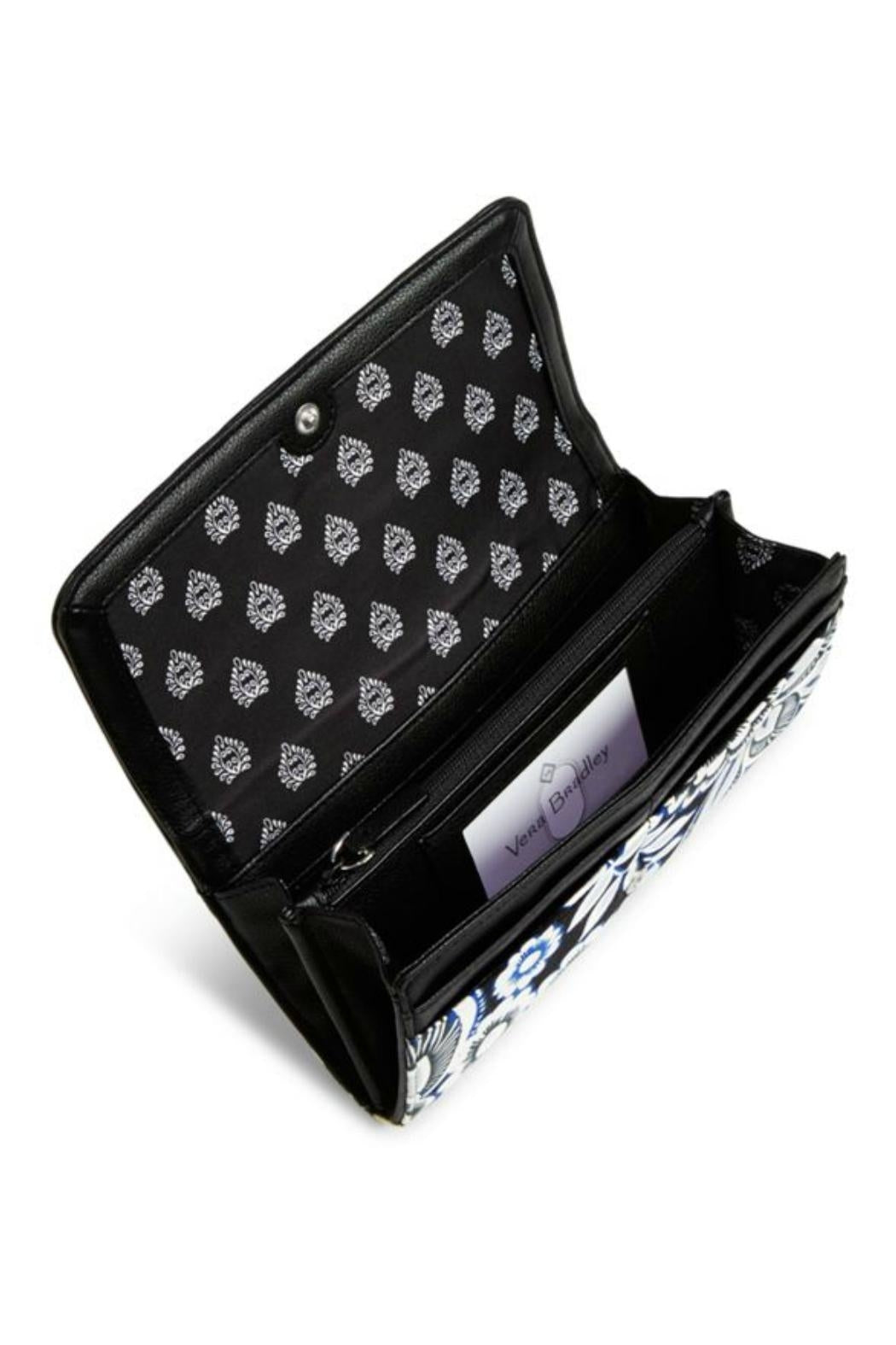 This is the RFID Audrey Wallet in the Snow Lotus pattern. The wallet is the unsung hero of our bags. The organizer of our cash, cards and coins. We all have to have one, so this is a way to do it in style! This signature cotton is colorful and lightweight. Vegan leather front flap. Provides RFID protection for credit and debit cards. Exterior zip pocket on back. Two gusseted compartments with 12 credit card slip pockets, two large bill pockets and a zip coin pocket. Hidden pin snap closure. Pattern placement in print may vary. Find other Snow Lotus accessories on the "Mimi's Gift Gallery" boutique page. Dimensions 7 ¾" w x 4" h x 1 ½" d
