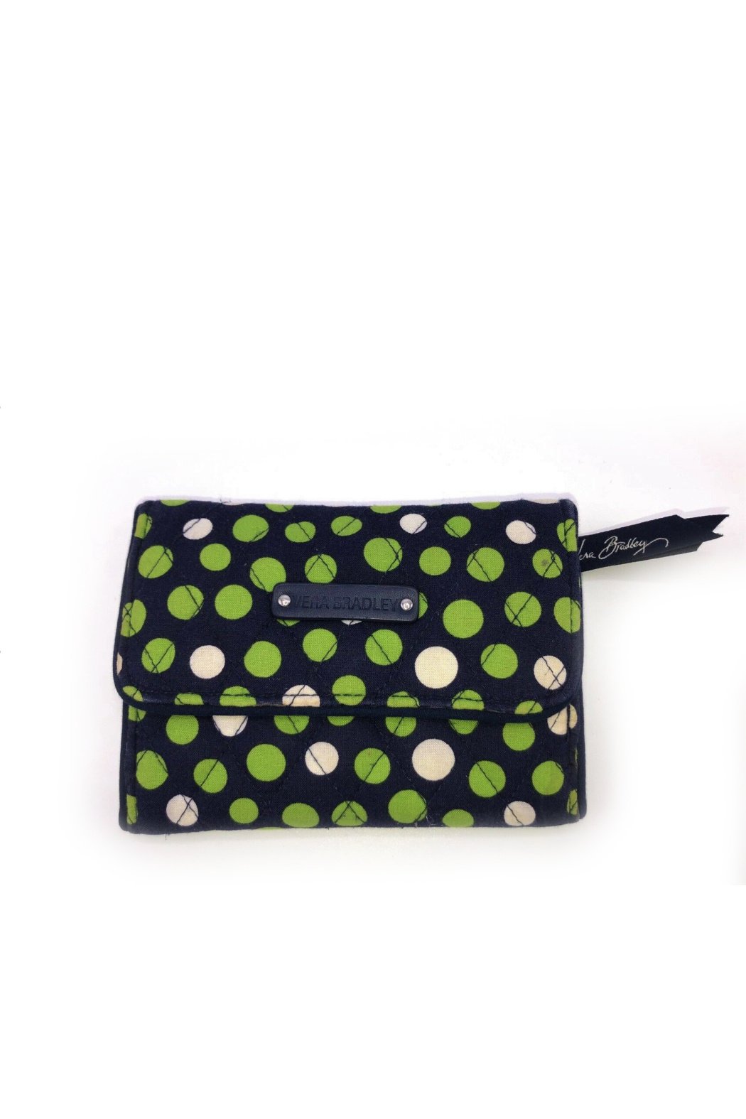 Here is the Vera Bradley Euro Wallet in the Lucky Dots pattern. This small but roomy compact wallet even fits Euros and is just right for smaller crossbody and clutch bags! There's plenty of room for cash, cards, coins and your ID. Exterior features one a zip coin pocket on the back, and two closure snaps to allow for expansion; Interior features 8 card slips, two bill slips, one ID window. Signature detail on front. Click on "Mimi's Gift Gallery" boutique page to find other bags and accessories in this pattern.