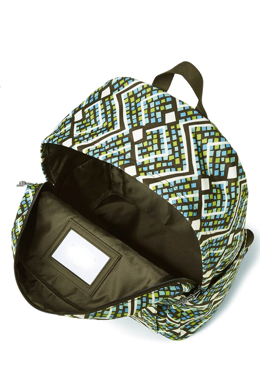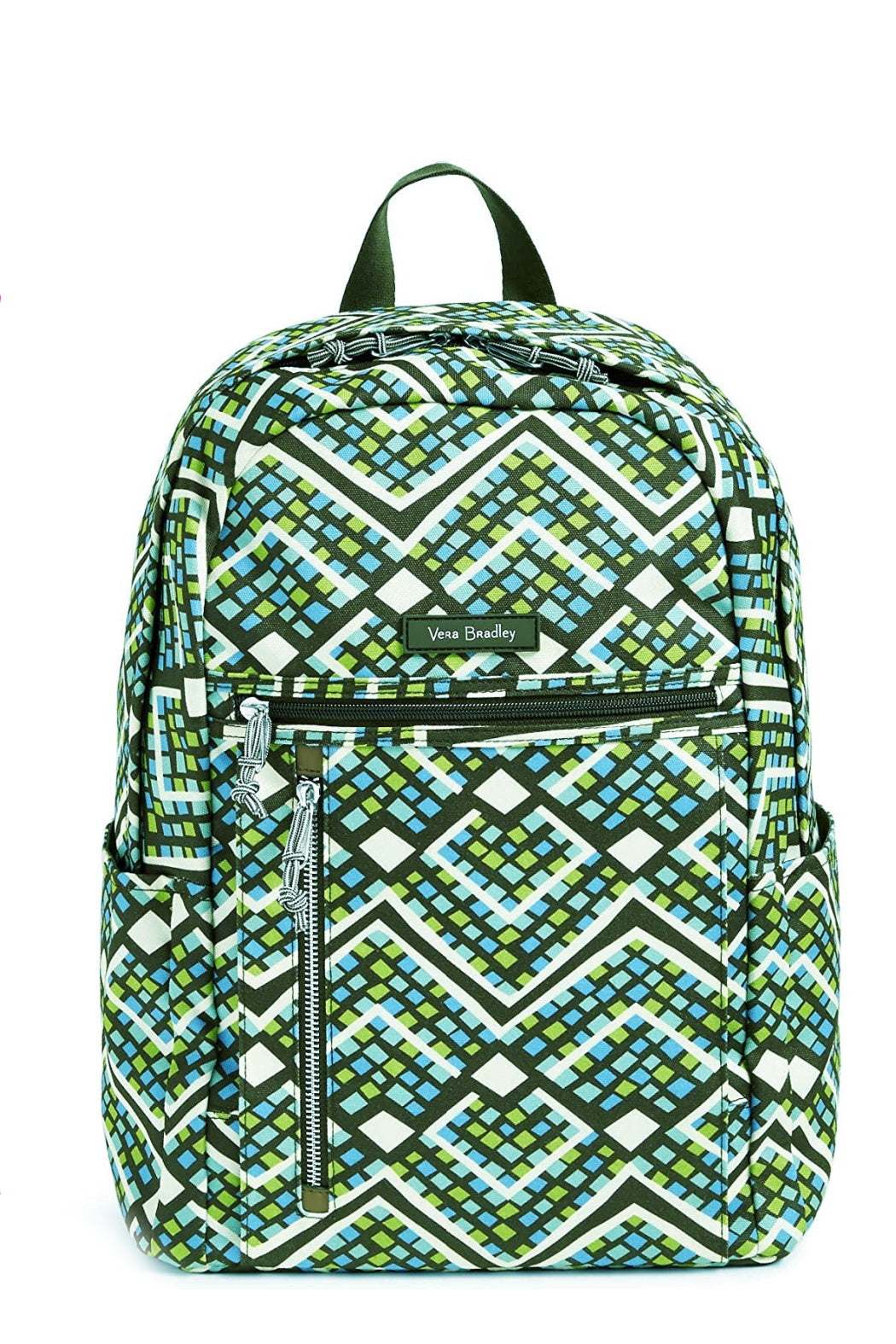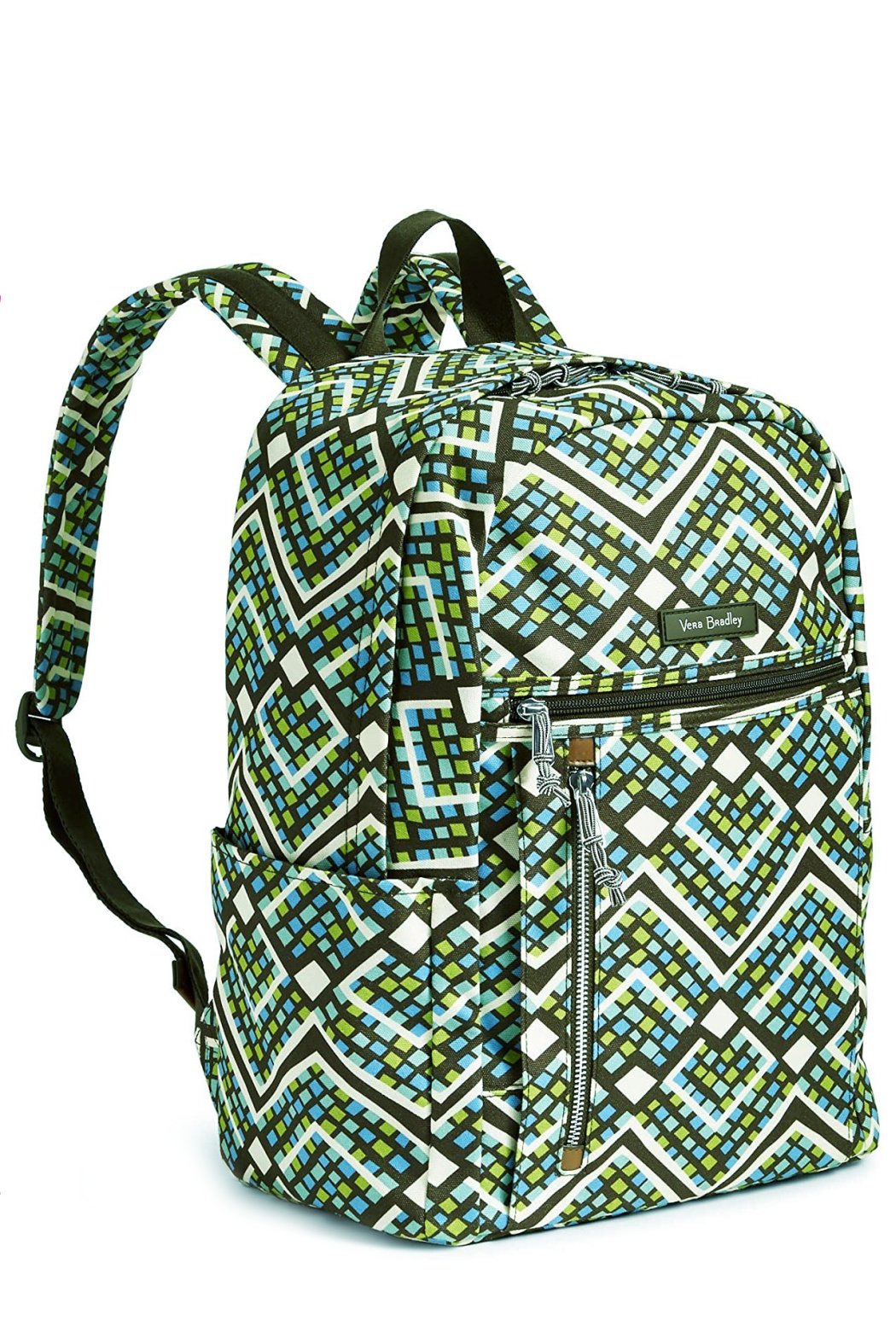 Here is the Vera Bradley Lighten Up Small Backpack in the Rain Forest pattern. Whether you need it for school, an overnight stay, or a quick weekend trip, this bag is your adventure companion. The Lighten Up fabric is water repellent, so no worries about your belongings getting soggy. Built to last, it is also machine washable and fade resistant. It features 2 front zip pockets, 2 side slip pockets, a "hidden" back zip pocket, and a large main compartment with a padded slip pocket and an ID window. It also has padded shoulder straps. Pattern placement will vary making each bag unique. Click on the "Mimi's Gift Gallery" boutique page to see matching bags and accessories in this pattern.