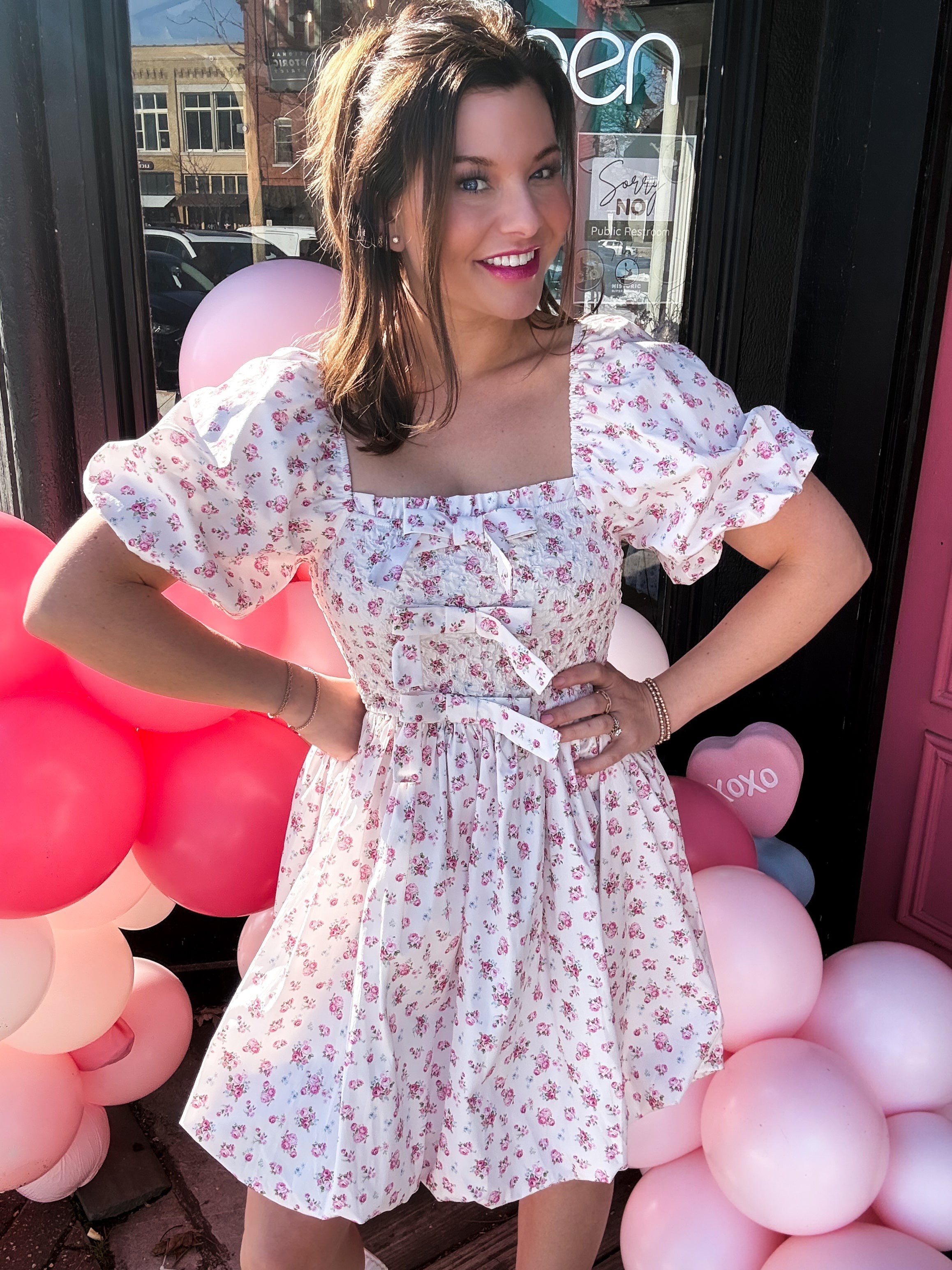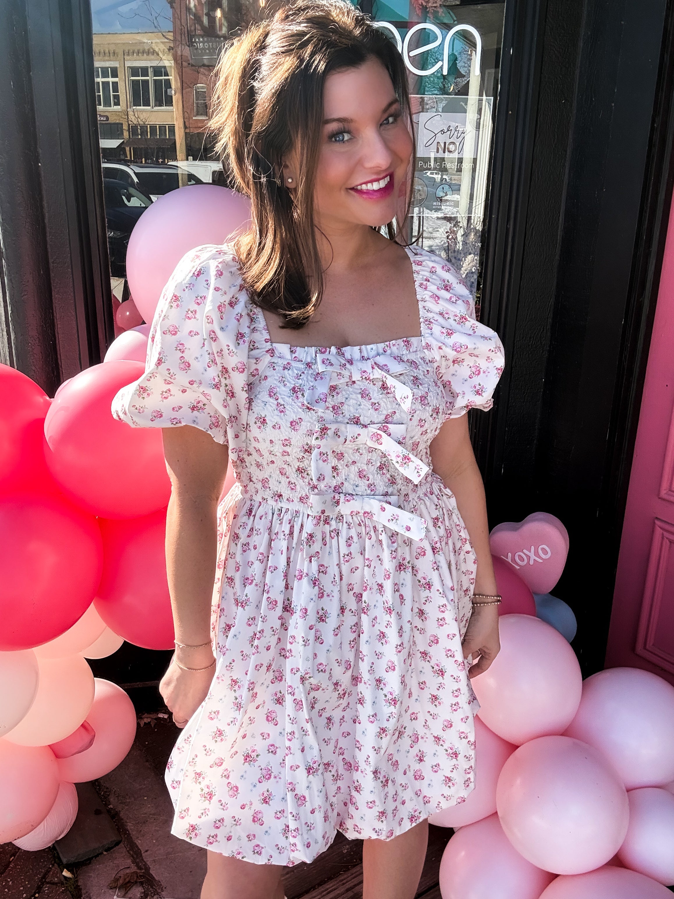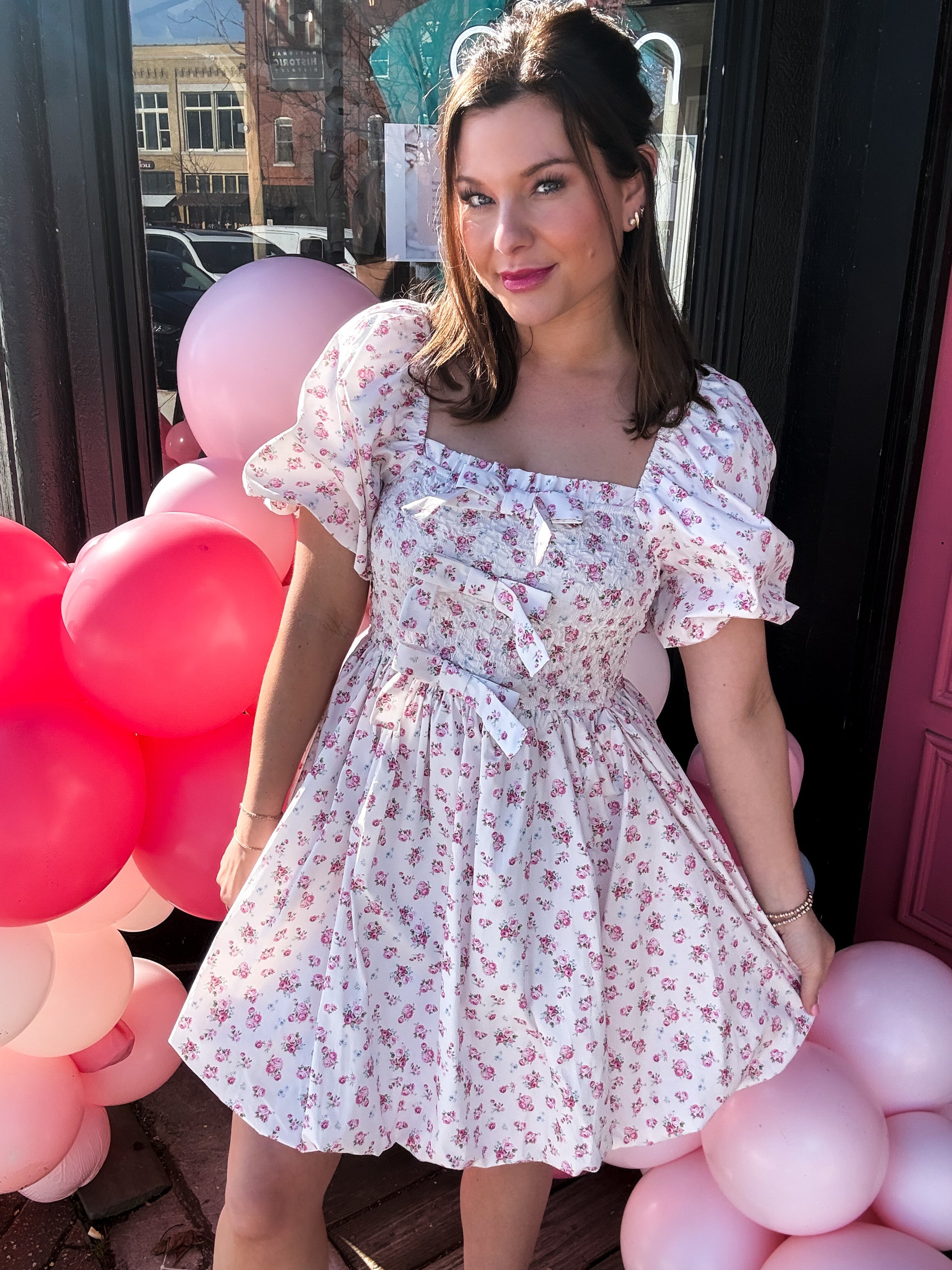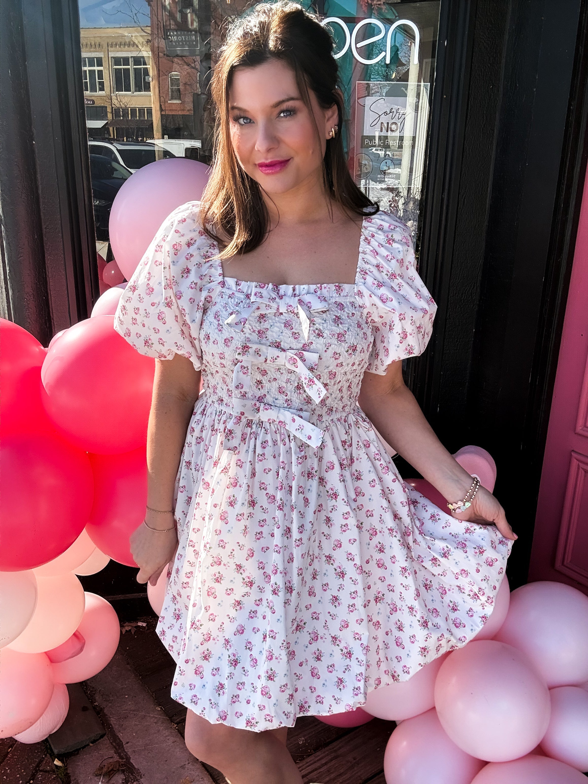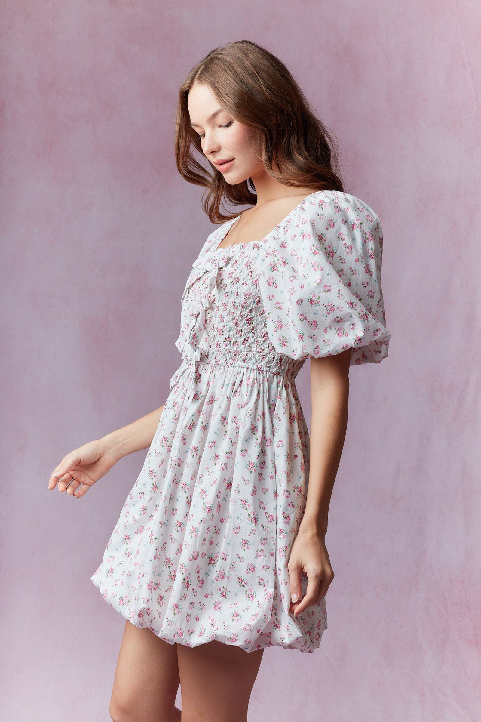 Ditsy Rose Poplin Bubble Hem Mini Dress