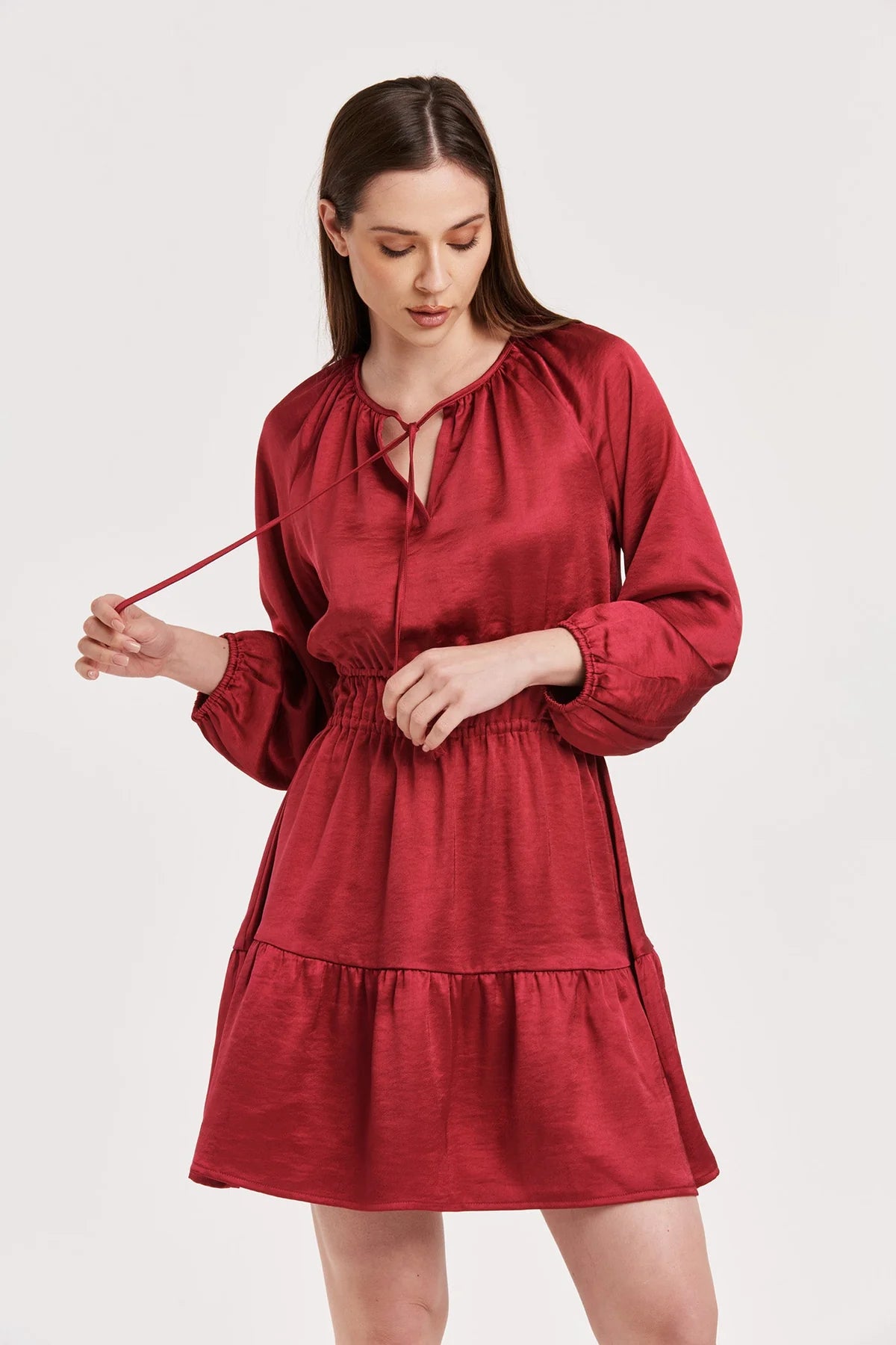 Effortlessly chic and versatile, this satin mini dress combines comfort and elegance. The elastic waistband ensures a relaxed, flattering fit, while the silky fabric adds a touch of sophistication. Perfect for casual outings or formal events, this wardrobe essential transitions seamlessly from day to night.