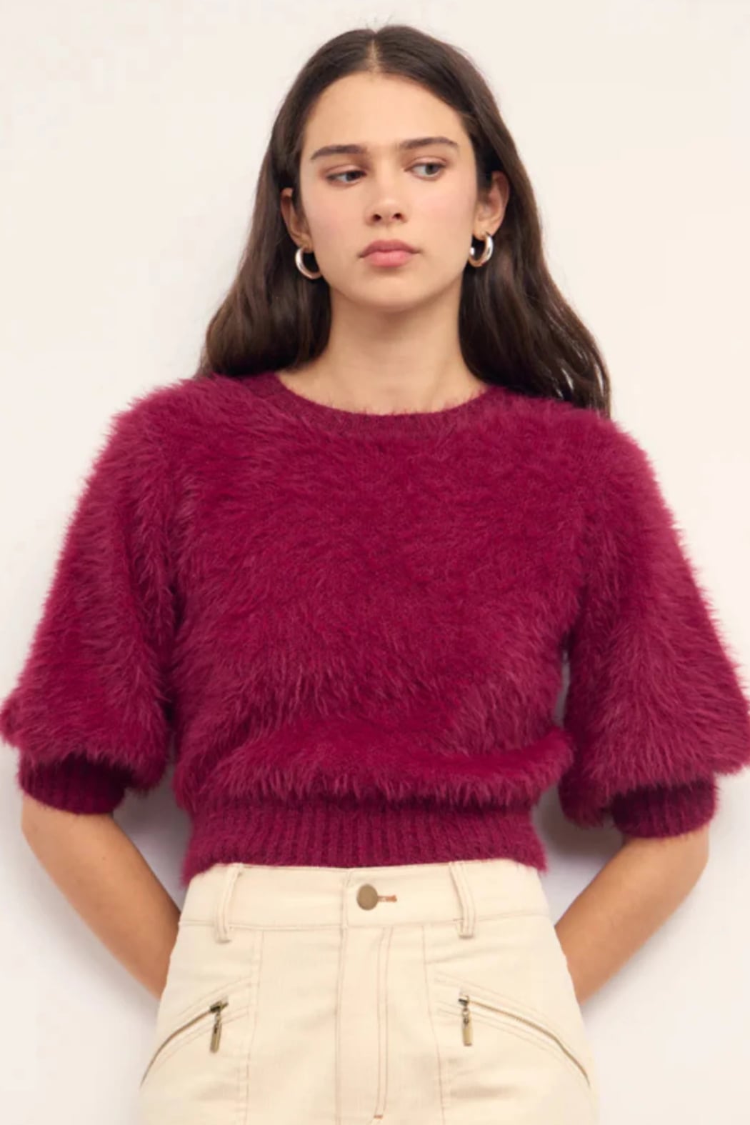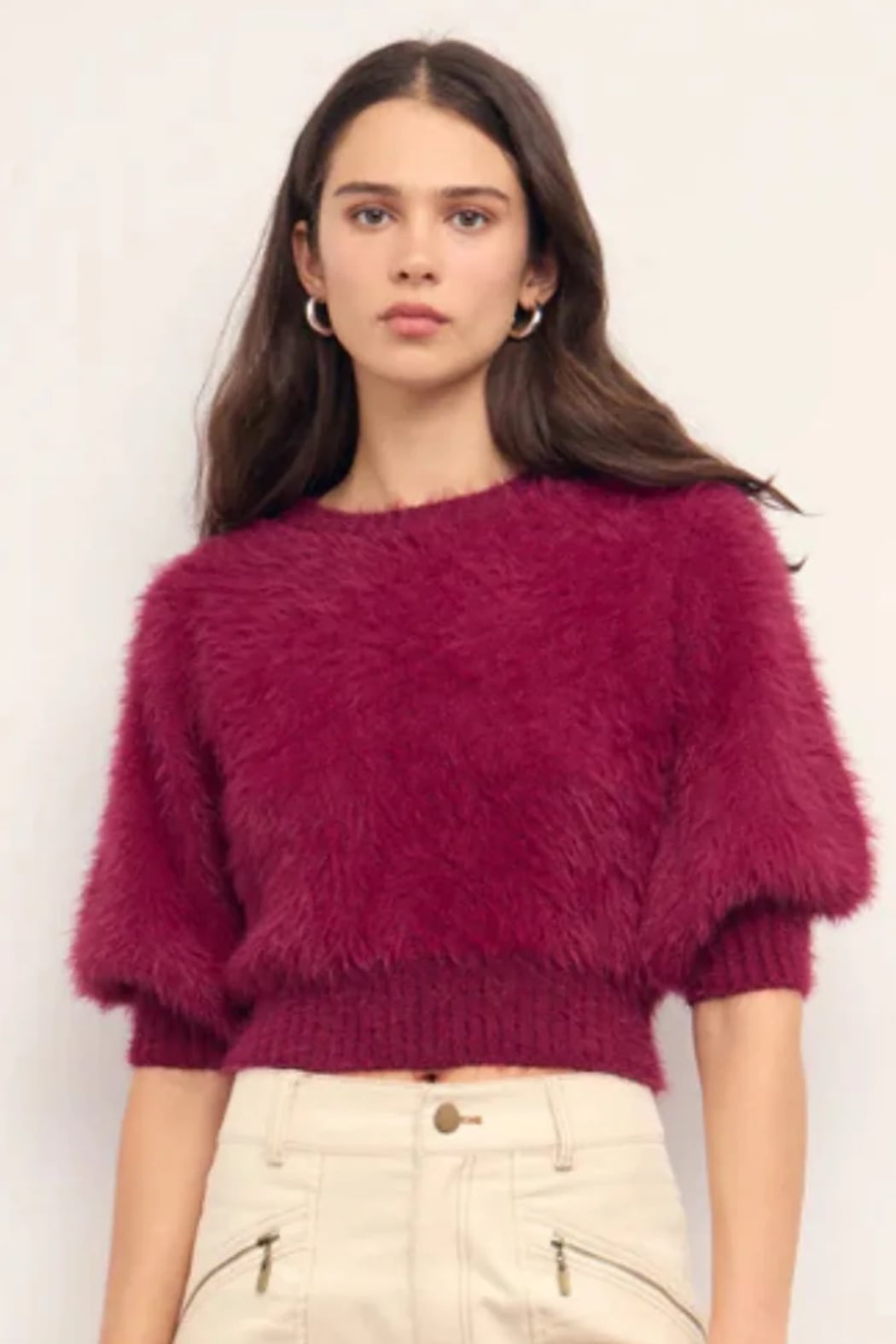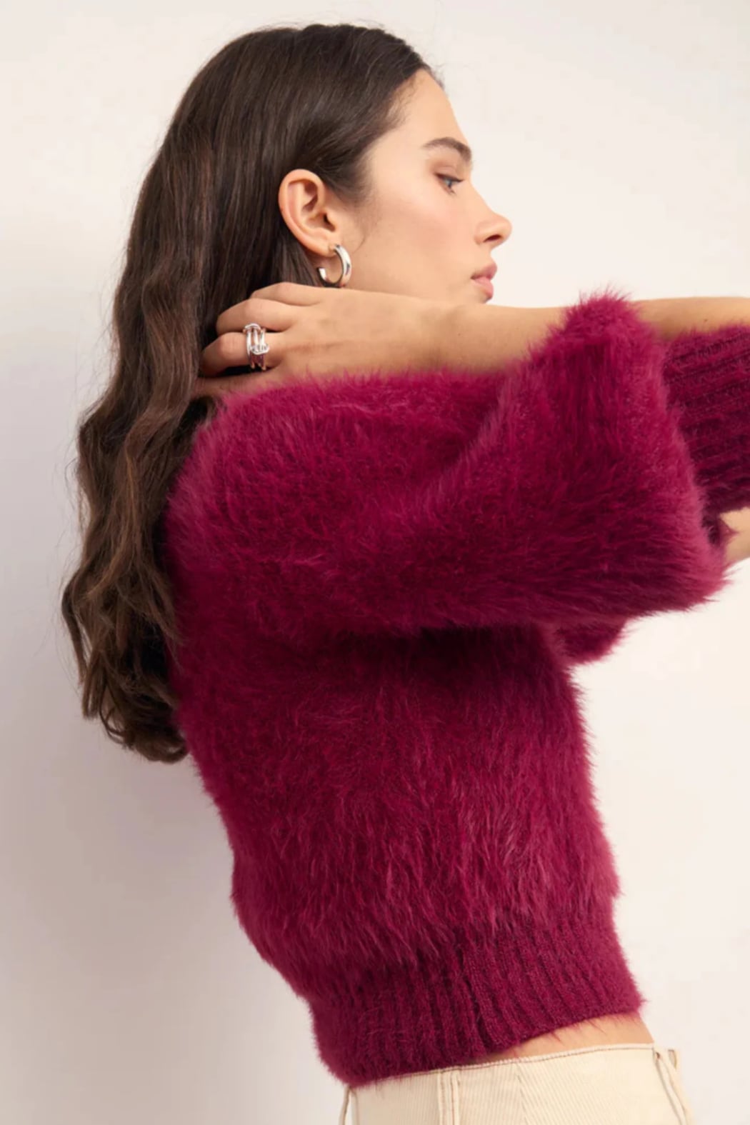 The Alva Cropped Sweater is a rich wine-hued piece that feels warm and expensive. The fluffy texture feels elevated, while the cropped cut keeps it chic and modern. It's comfy, but make it fashion. Perfect for dinner dates, wine nights, holiday gatherings, cozy-but-chic days out, or anytime you want to look effortlessly luxe.