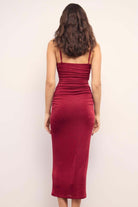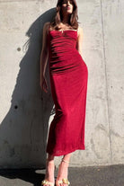 All eyes will follow when you walk wearing this elegant, sexy, and effortlessly powerful Maya Midi Dress. A rich wine hue, a sleek midi length, and that confident, body-loving fit that turns a simple walk into a moment. It's the kind of dress that feels expensive the second you slip it on. Perfect for romantic date nights, cocktail hours, holiday parties, and wine tastings.