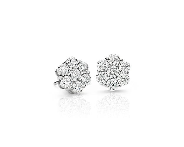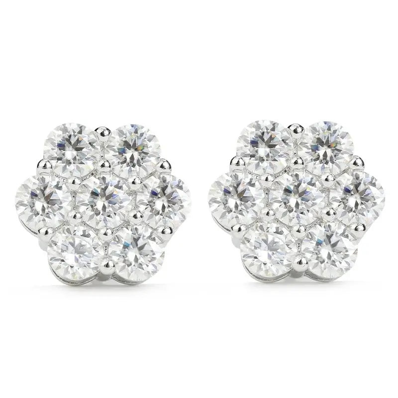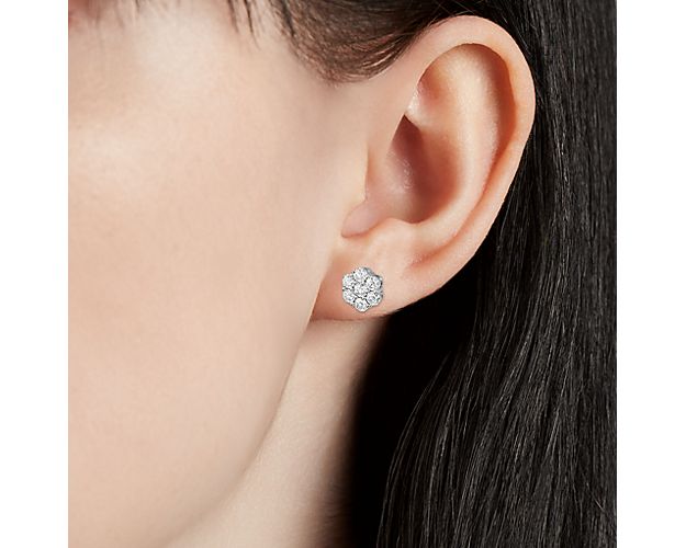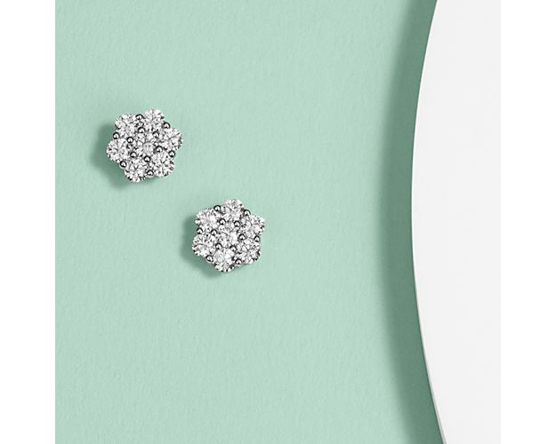 These simple and classic 1/2 ct. t.w. Cubic Zirconia cluster flower stud earings are the best gift for yourself and your loved ones. These glamorous cluster Cubic Zirconia stud earrings are beautifully made in sterling silver plated over brass metal with seven sparkling and dazzling white round Triple AAA Cubic Zirconia. Make them the most perfect jewelry for day and night for any occasions and event.