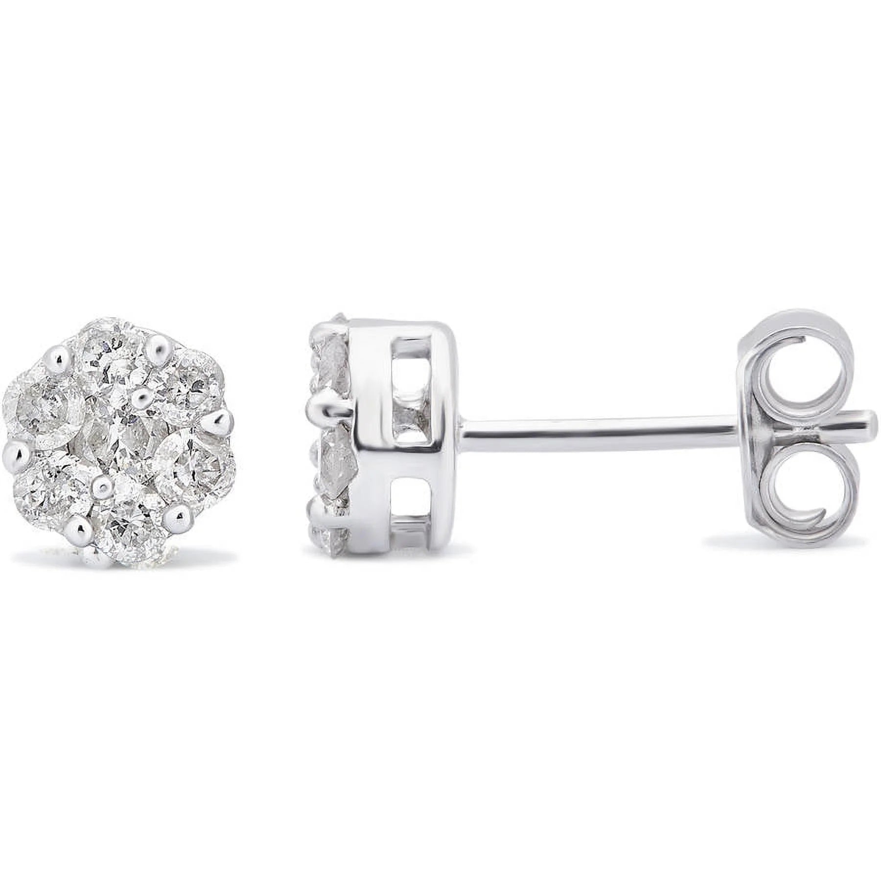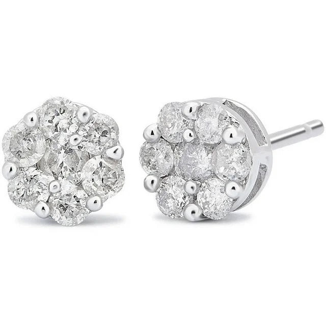 1/2 Carat T.W. Cubic Sterling Silver Illusion-Set 7-Stone Flower Cluster Stud Earrings