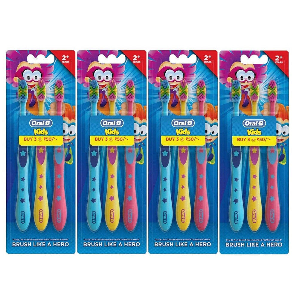 12 Pack Oral-B Kids Toothbrush, Extra Soft (4 Packs of 3)
