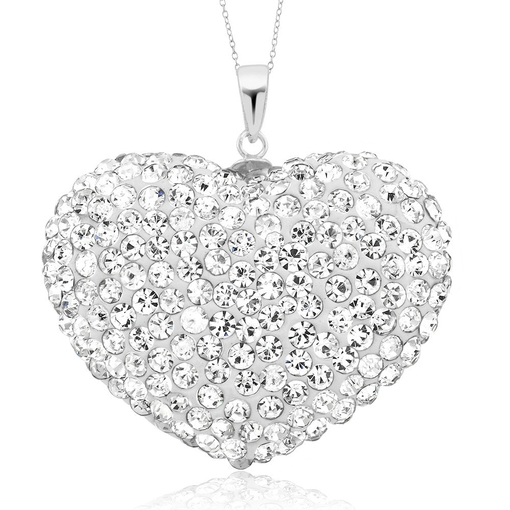 18kt White Gold Plated Crystal Heart Drop Necklace