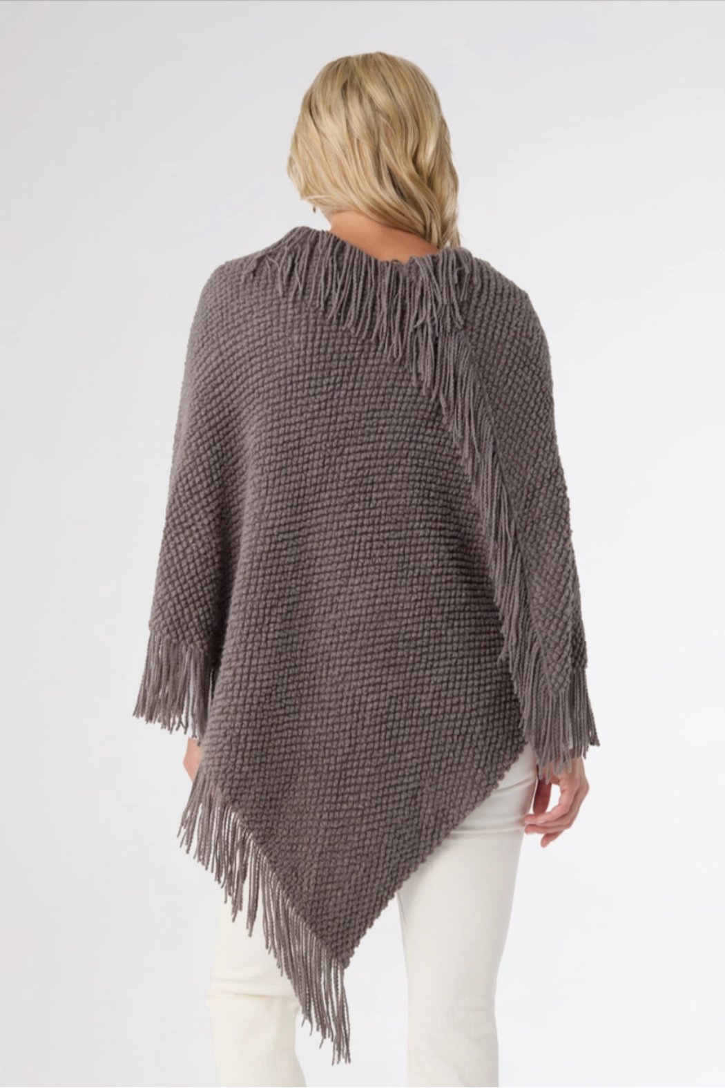 Very Soft Charcoal Grey Fringed Poncho. Wear long as pictured or rotate it and wear short!