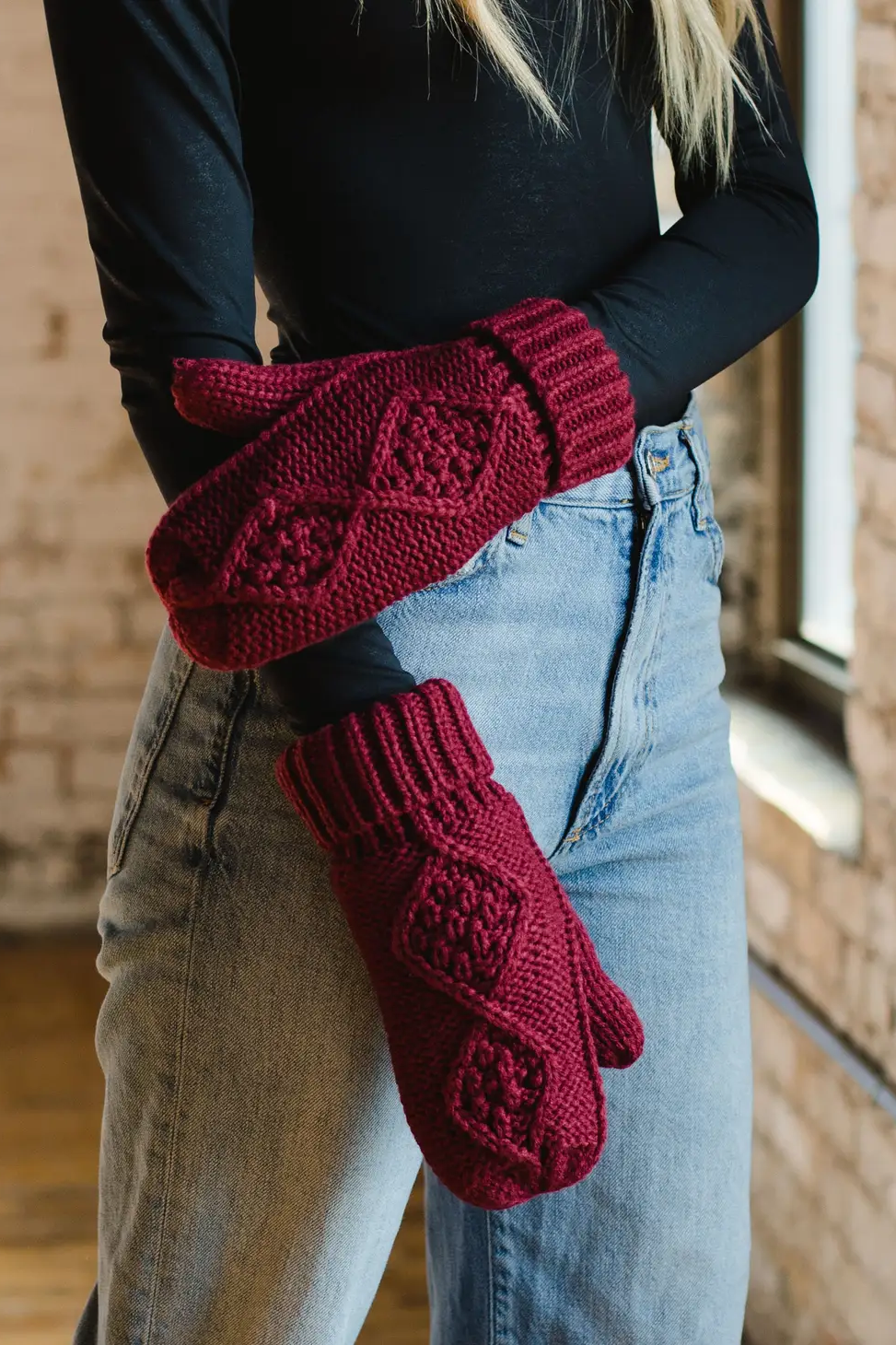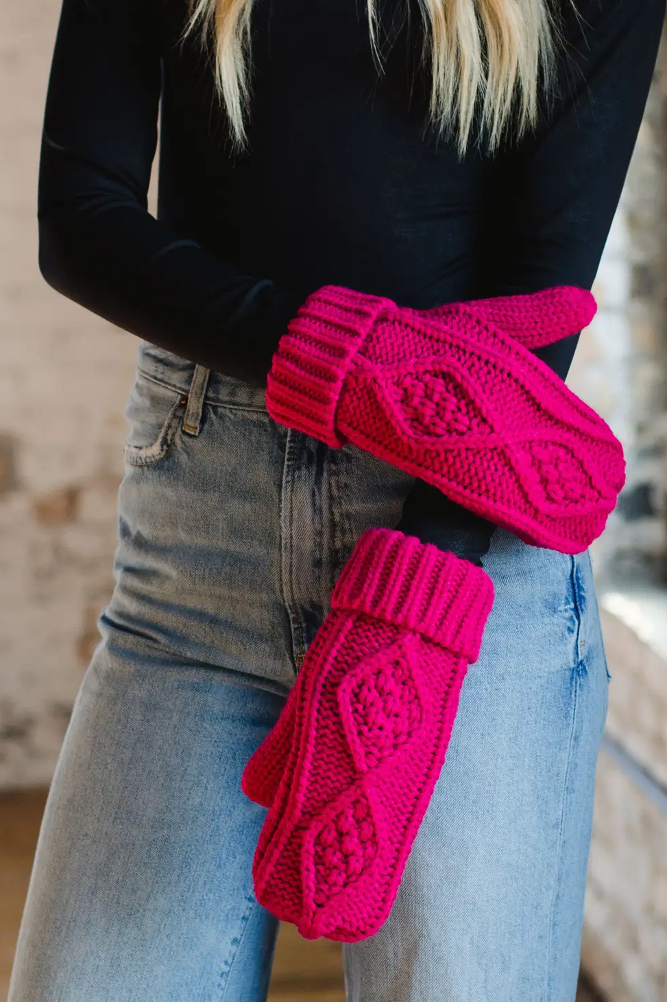 Super Soft Cozy Warm Black cable knit fleece lined mittens.