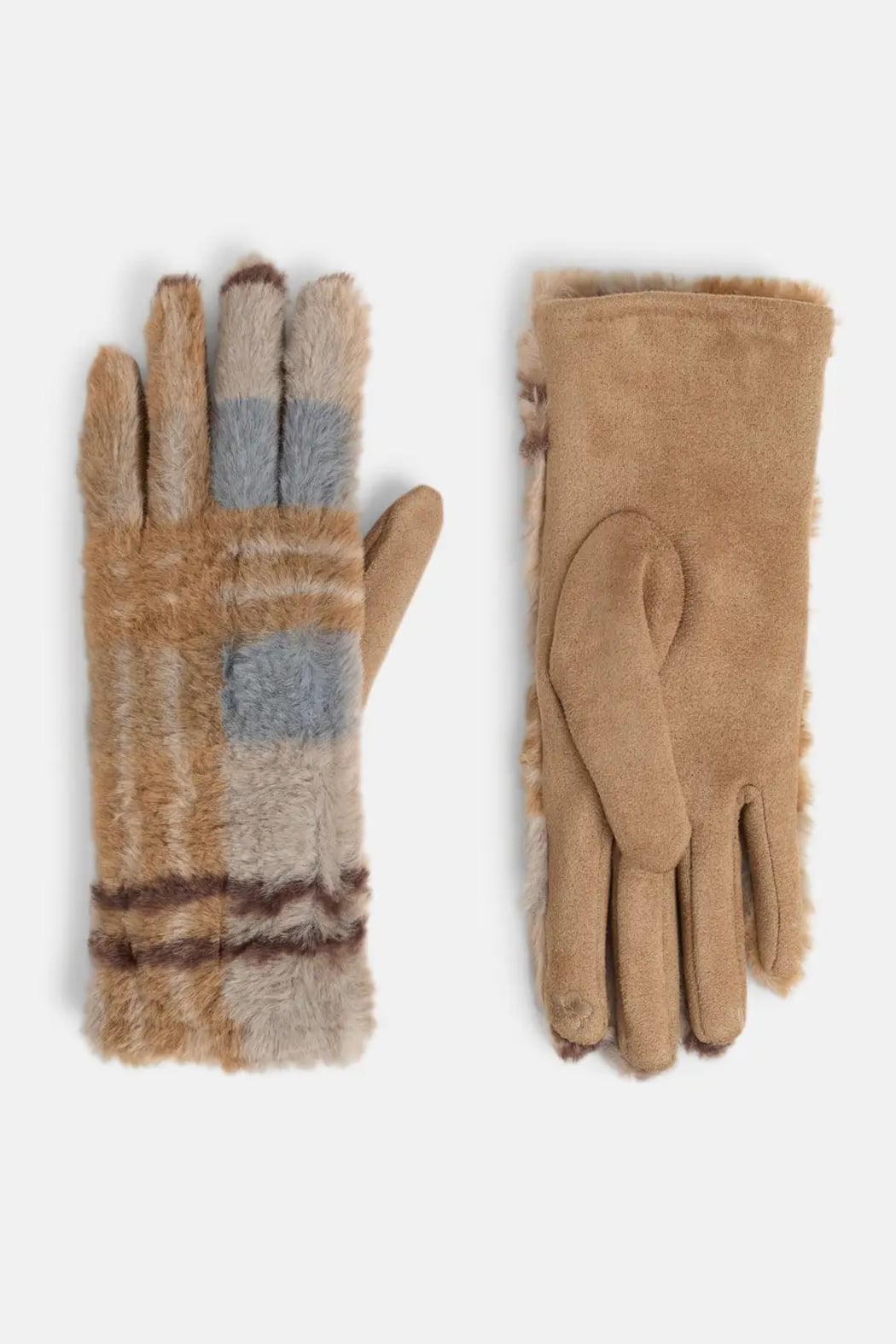 Soft Stretchy Faux Fur Plaid Touch Screen Gloves.