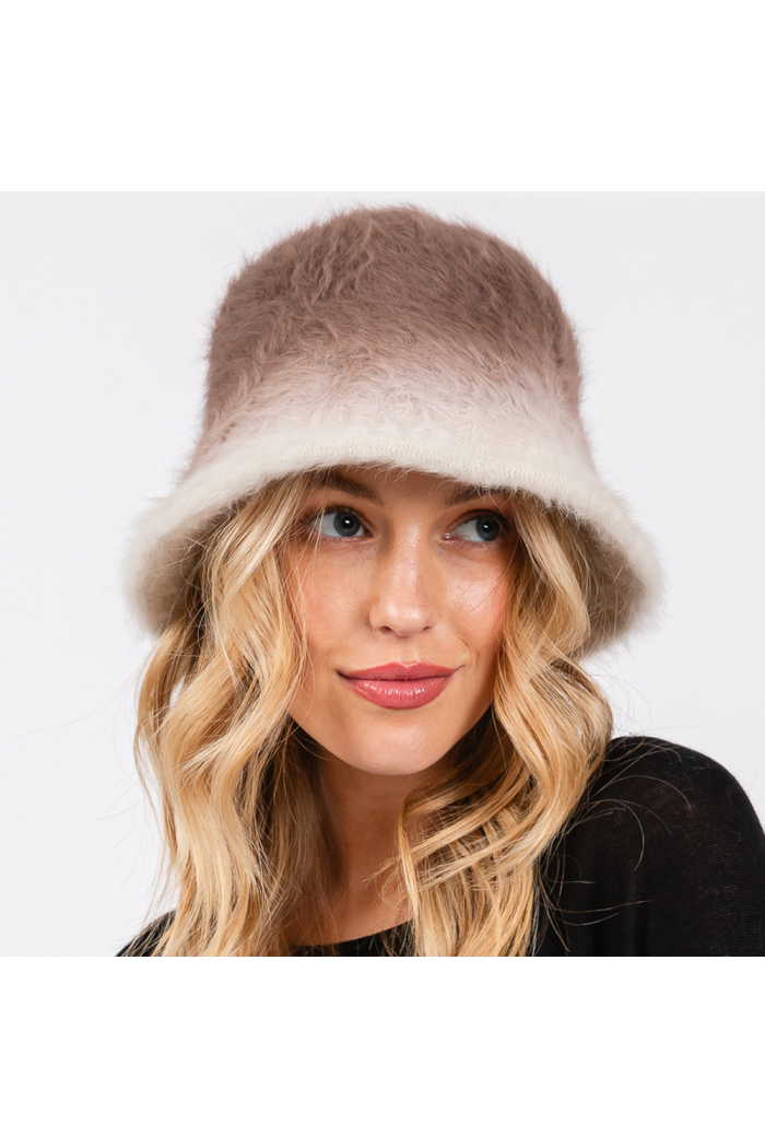 Gradient Color Fuzzy Cozy Warm Bucket Hat.