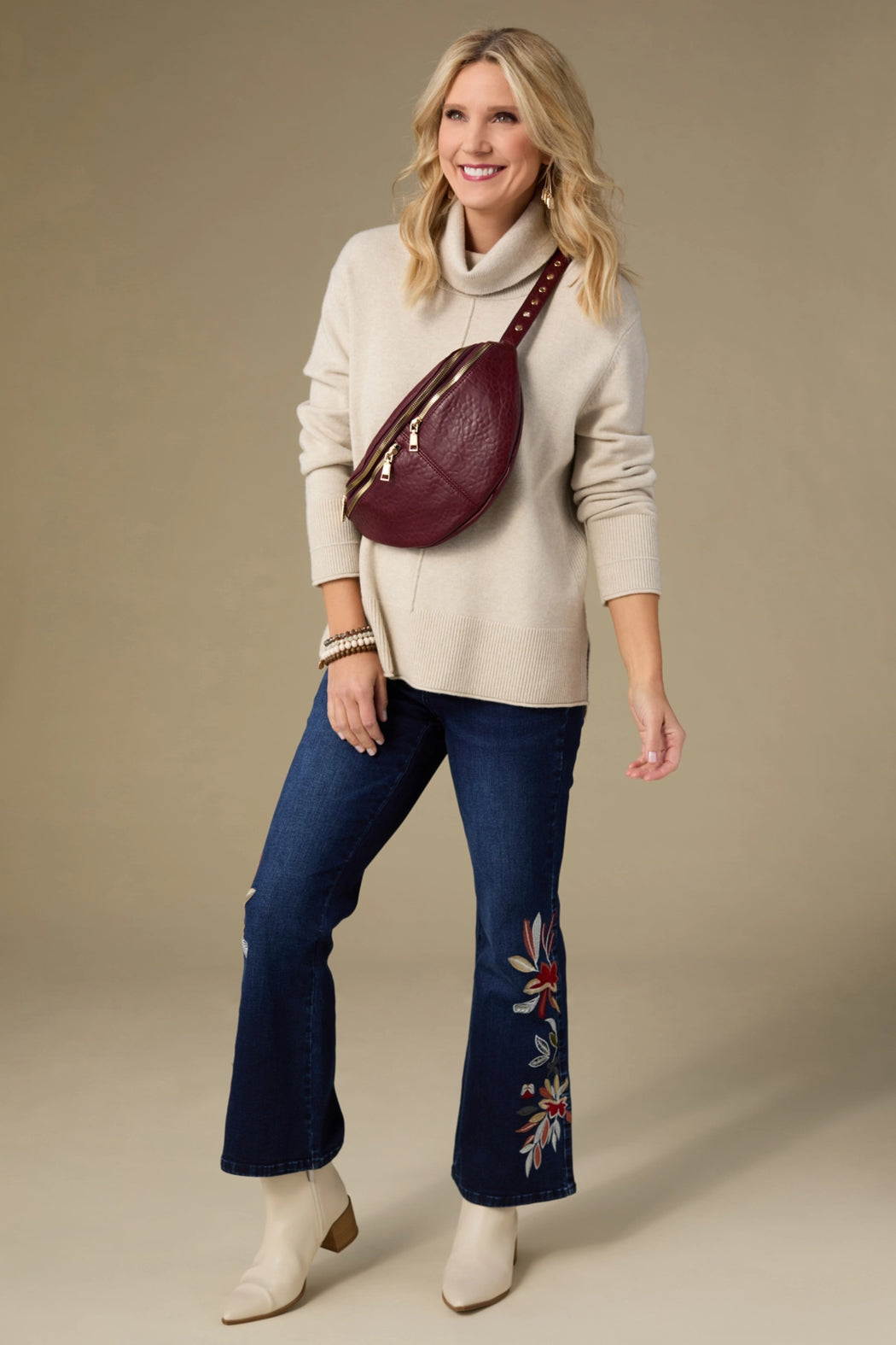 Beautiful Super Soft Luxury Oatmeal Sweater with high neck, long sleeves and ribbed trim detail