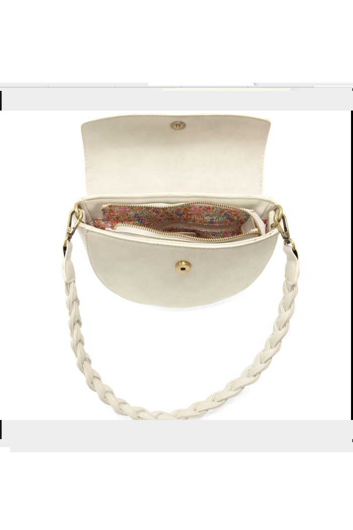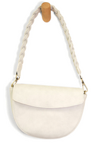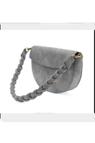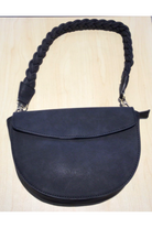 Black faux leather bag with braided strap also has removable and adjustable cross body strap.