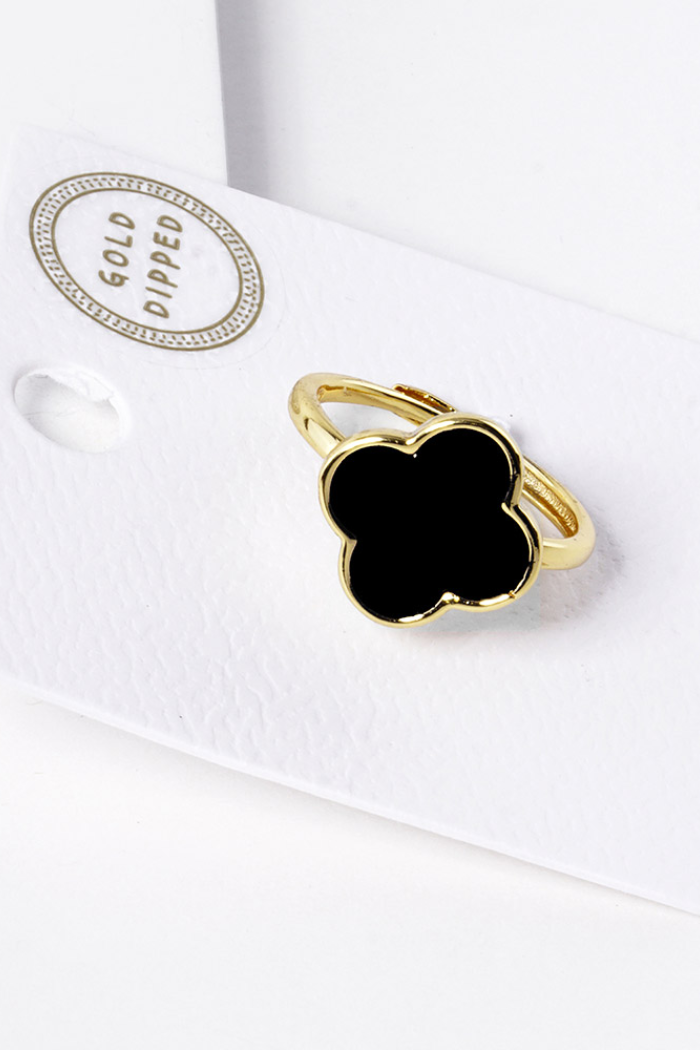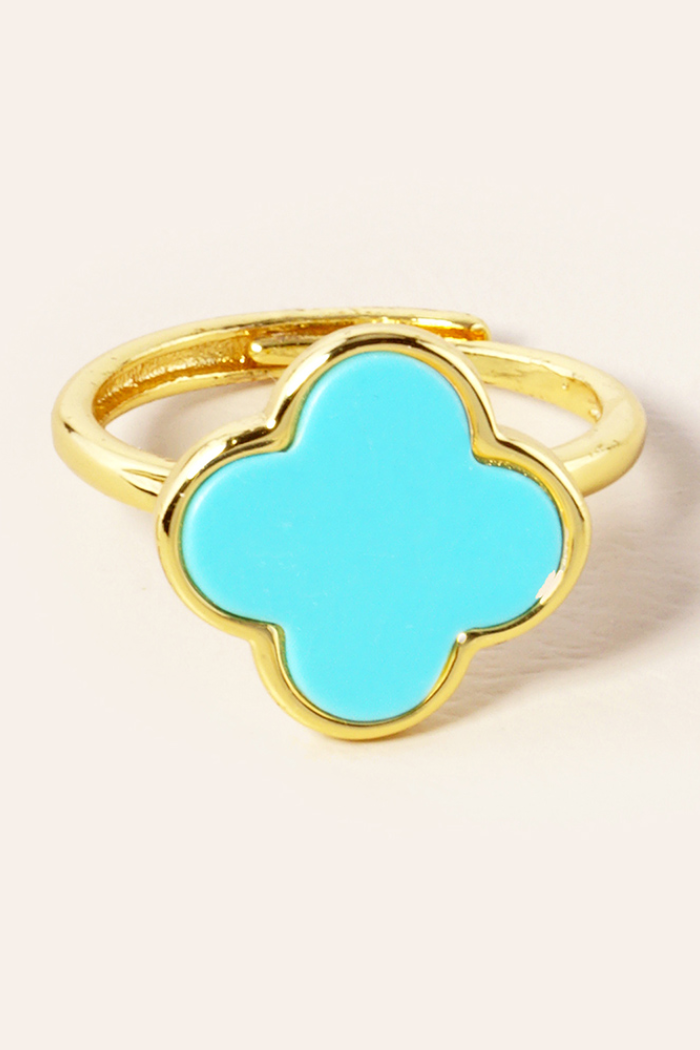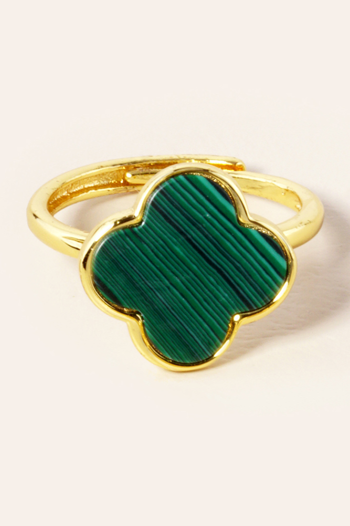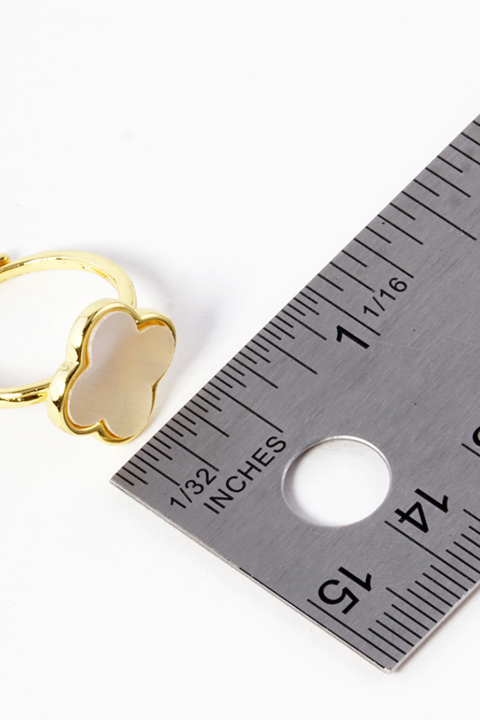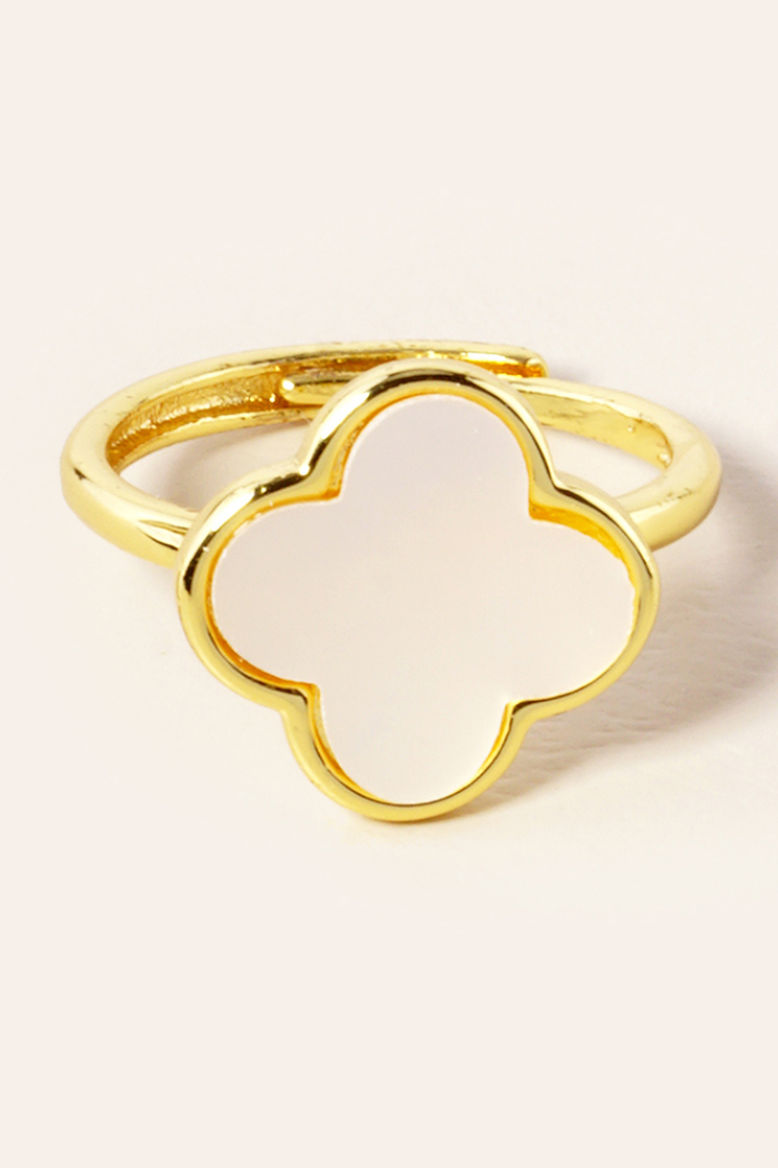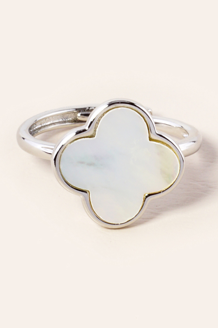 Gold or Silver Quatrefoil Adjustable Rings with Mother of Pearl or Stone.