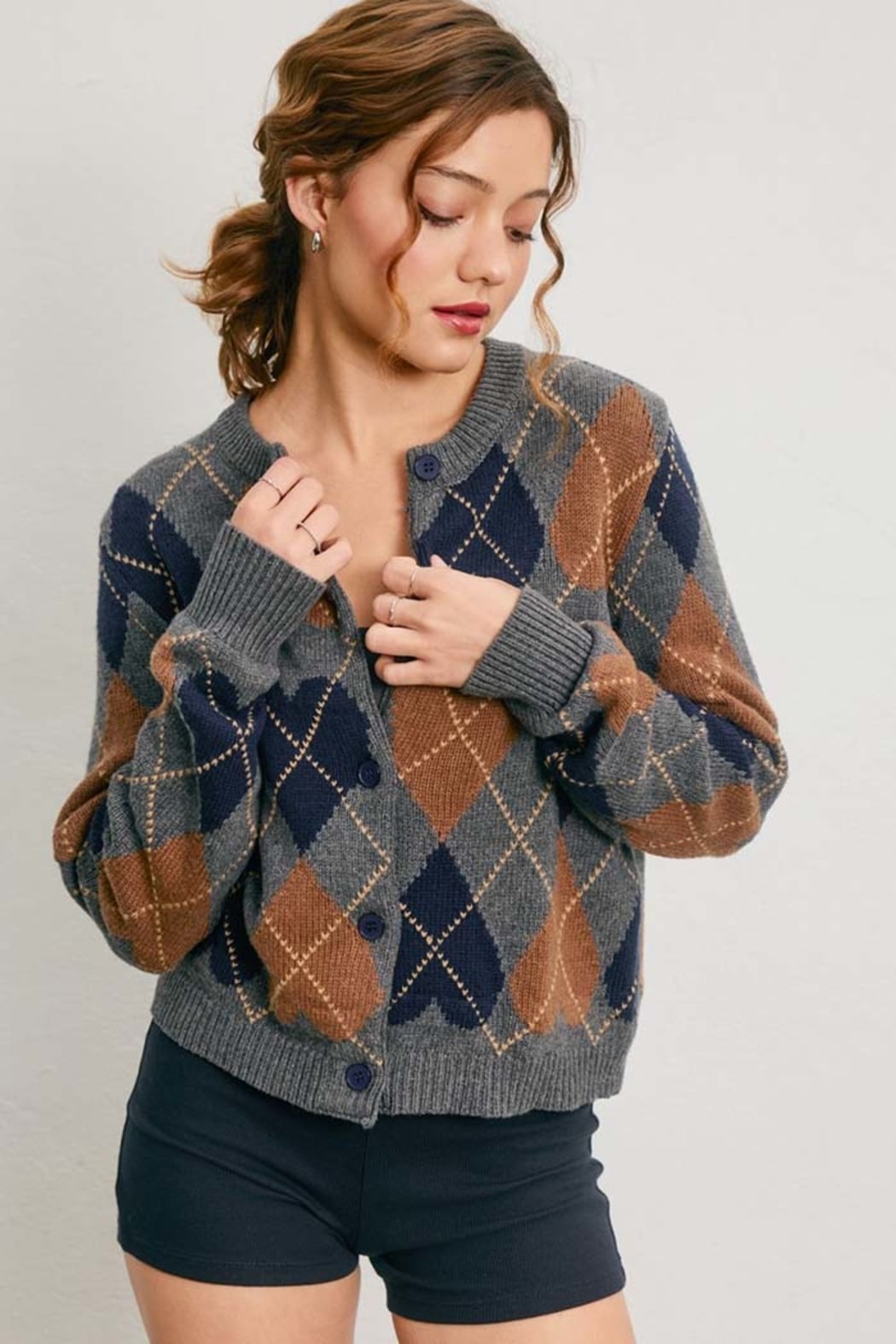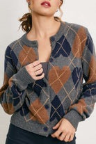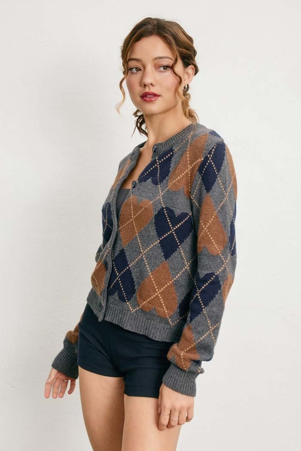 Cozy Heart Argyle Cardigan – Button Down Knit Sweater for Women