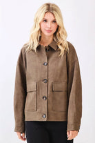 Faux Leather Utility Jacket | Women’s Button Front Outerwear