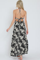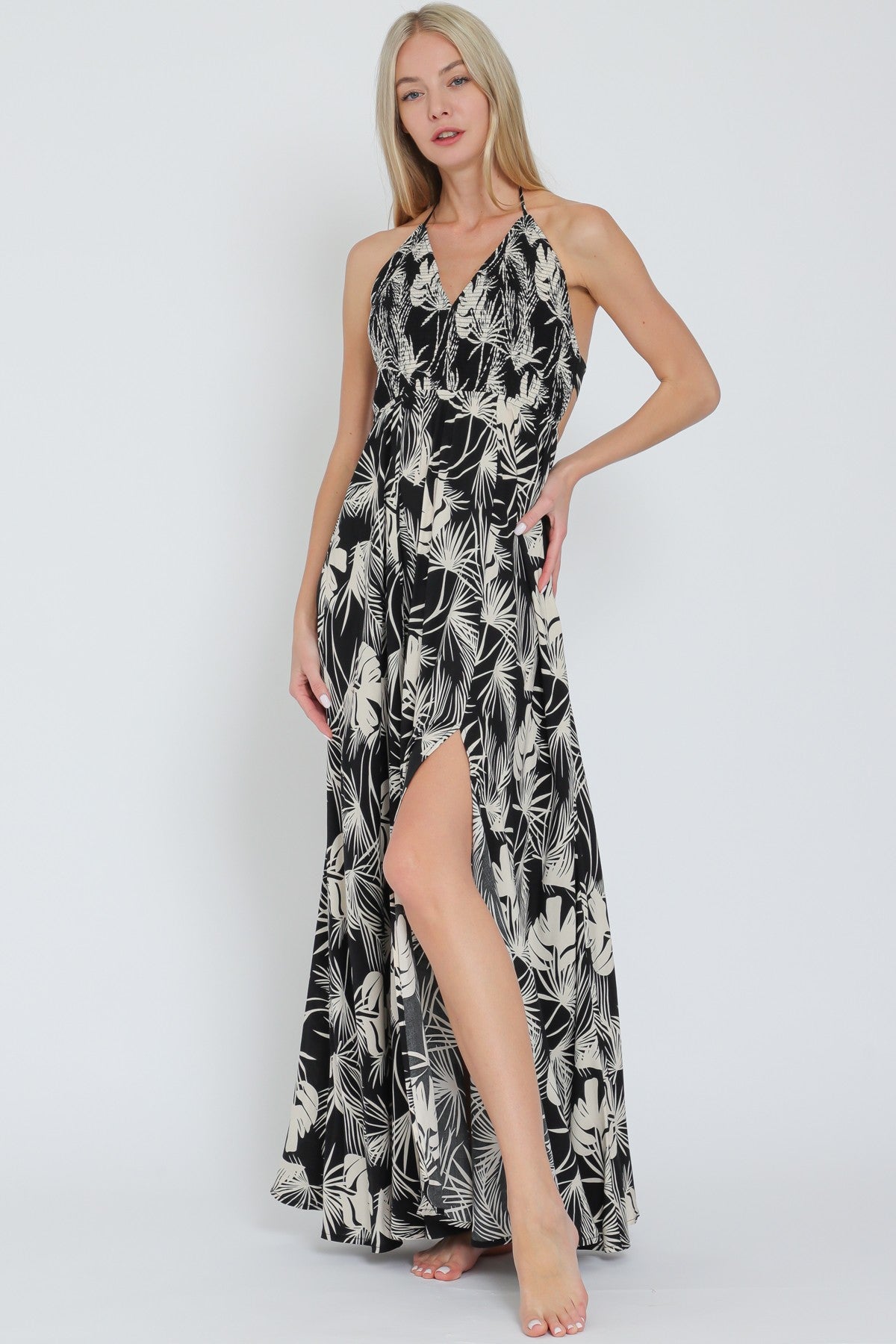 HALTER SMOCKED ELASTIC BACK WAISTED MAXI DRESS