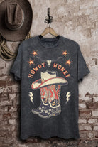 Western graphic tee, howdy honey tee, boyfriend graphic t-shirt, mineral washed tee, women’s graphic top, boutique graphic tee, cowboy boots graphic shirt, casual graphic tee, festival top, concert outfit, Mother’s Day outfit, Easter outfit, game day top, gifting tee, everyday graphic shirt