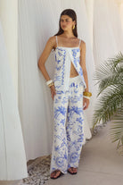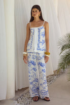 Embrace understated elegance with the Katri Pants, showcasing a captivating Grecian-inspired print in a breathable rayon blend. The straight silhouette and mid-rise waist create a refined, timeless profile, while the adjustable drawstring and elastic waistband ensure comfortable wear throughout the day. Unlined and crafted from a non-stretch fabric for a structured drape, these pants pair seamlessly with the coordinating Katri Top for a cohesive ensemble. Composed of 90% rayon and 10% nylon for a luxurious feel.