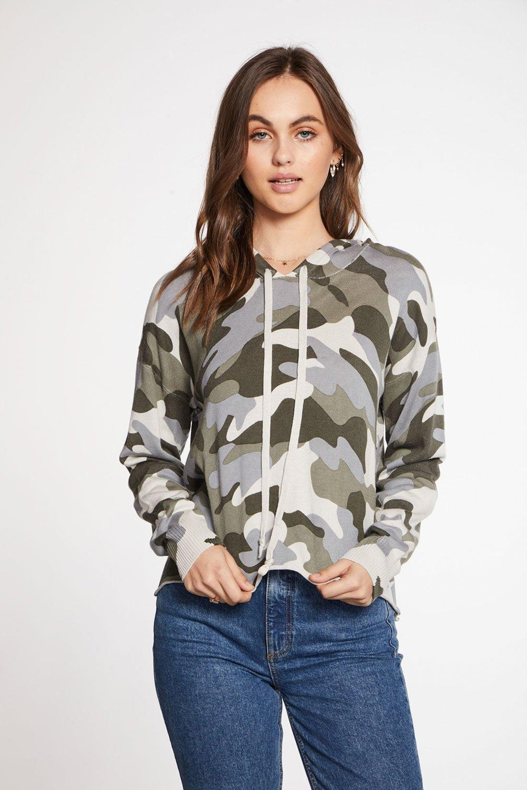 Chaser the Brand Lightweight Pullover Hoodie Layer like a player with our lightweight camo print pullover, designed with a cute hoodie and stylish hi-lo hem. Lightweight cotton Style with leggings and boots Color: Camo print Lightweight Hi Lo Hoodie Pullover Fabric Content: 60% Viscose 40% Cotton Model is 5’8” and wearing size small Imported