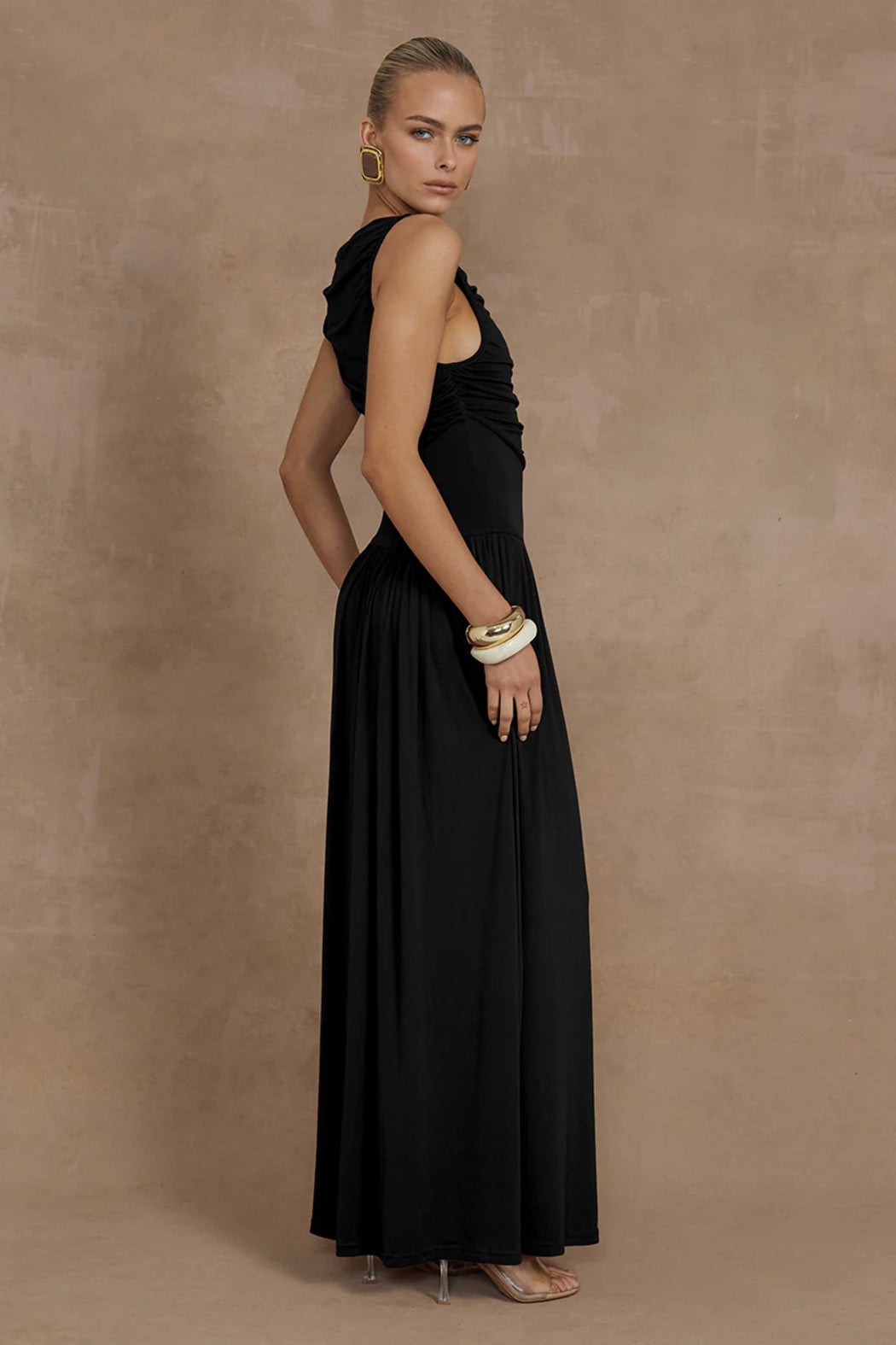 Our Nalla Maxi Dress showcases effortless elegance, with a boat neck and ruching throughout, it’s a versatile and timeless piece.  - Maxi length - Boat neckline - Ruching throughout the piece - Lined bodice with stretch - 50% Rayon, 45% Polyester & 5% Elastane Please refer to care label for garment care instructions, Colours may appear slightly different to the website due to lighting, computer picture resolution and monitor settings.