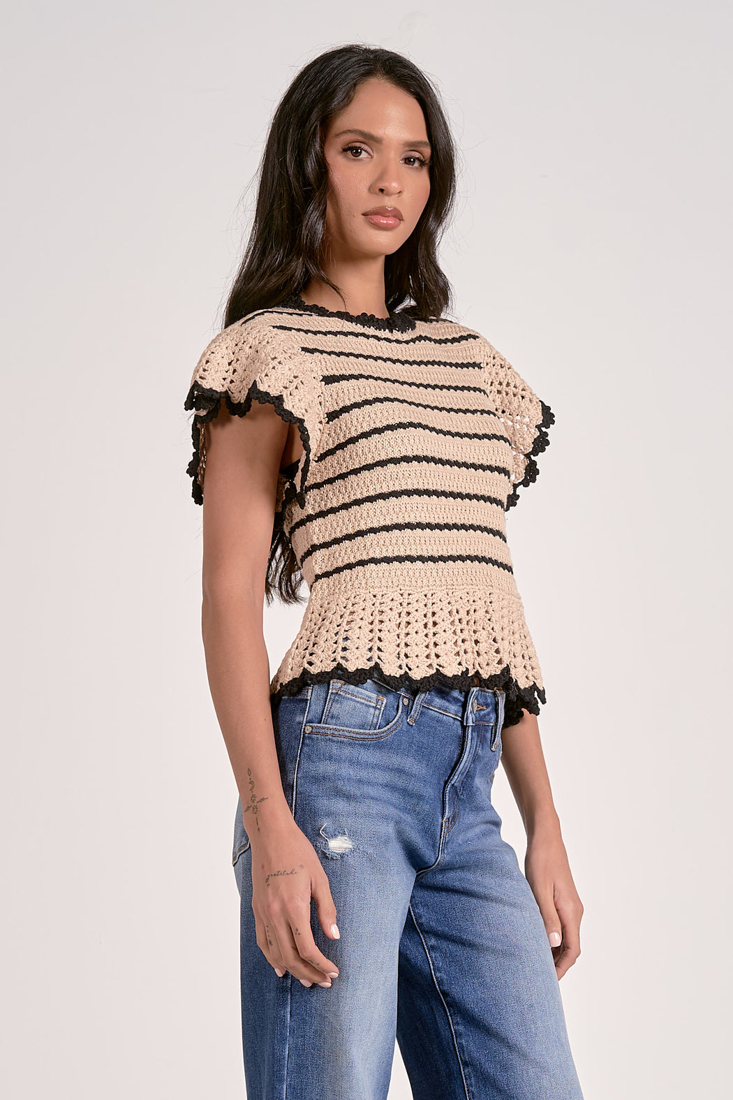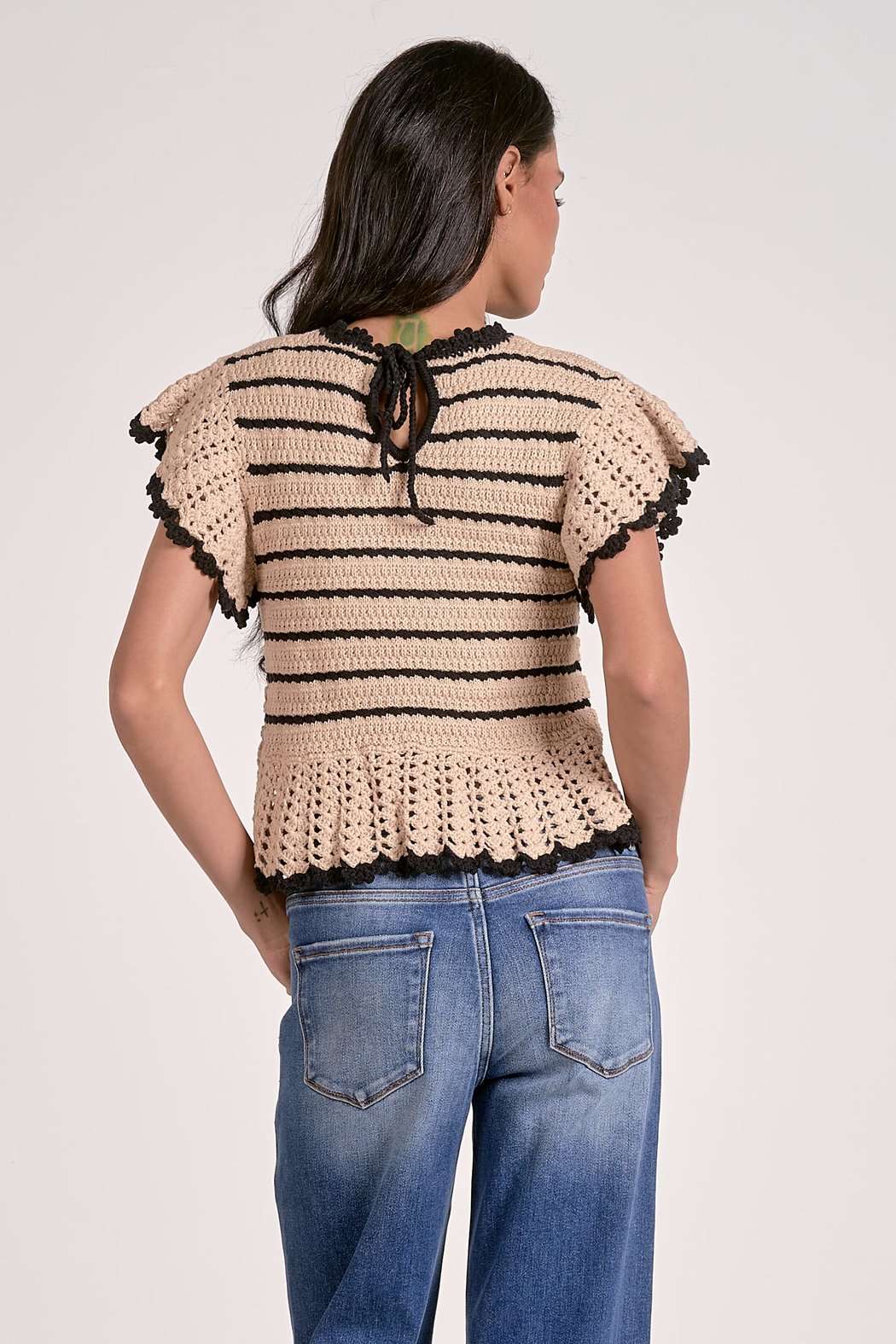 Add a touch of feminine flair with the Nina Sweater, designed with flutter sleeves and a subtle stripe accent. Lightweight yet cozy, this playful knit is perfect for pairing with light-wash denim or dressing up with fall skirts and boots.