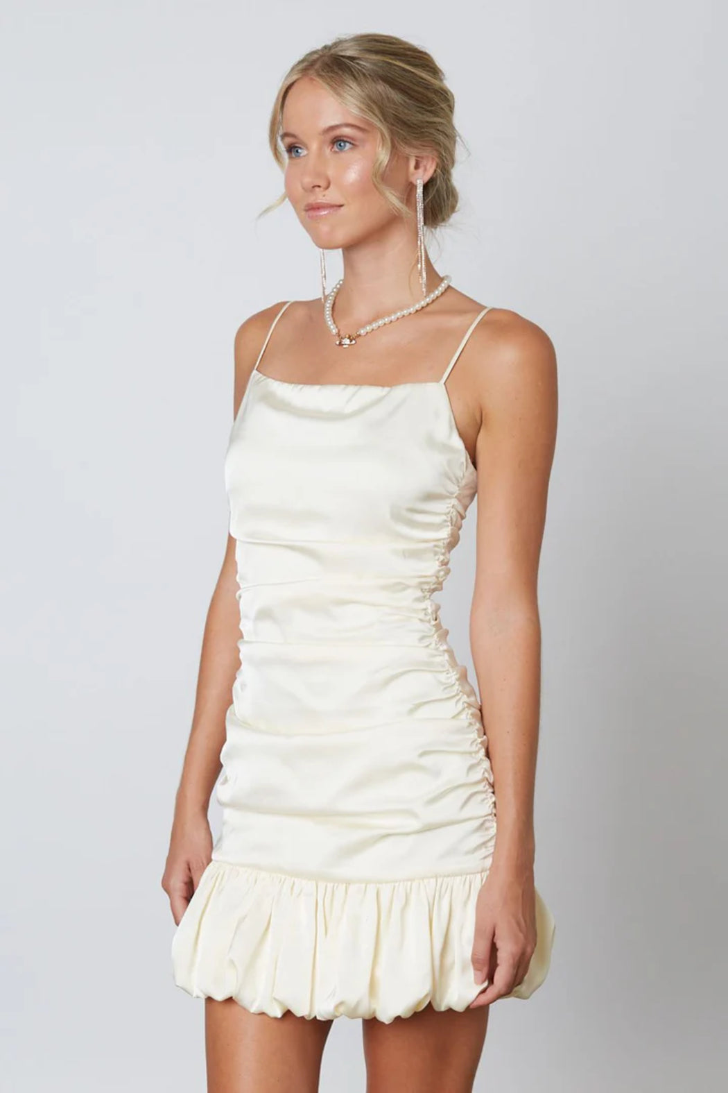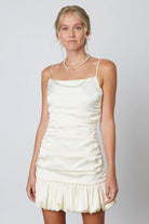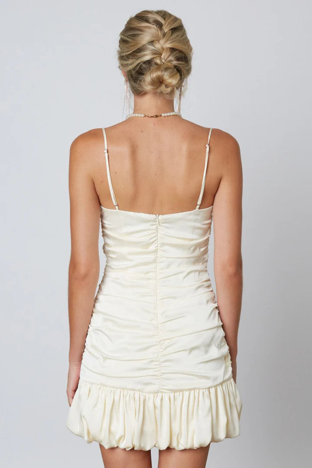 Ruched mini dress with peplum trimming detail, and adjustable straps
