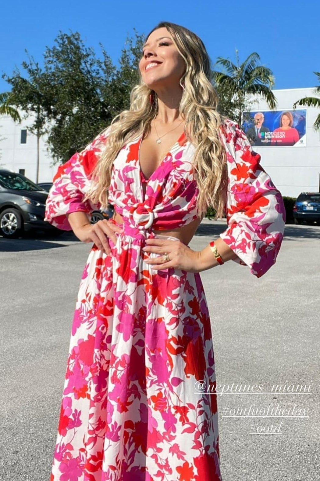 Spring Floral print, elastic cuffed long sleeve deep v neck.