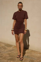 Featuring a gathered side seam for a fitted skirt and an oversized t-shirt inspired top, our Taylor Mini Dress is your easy everyday look.