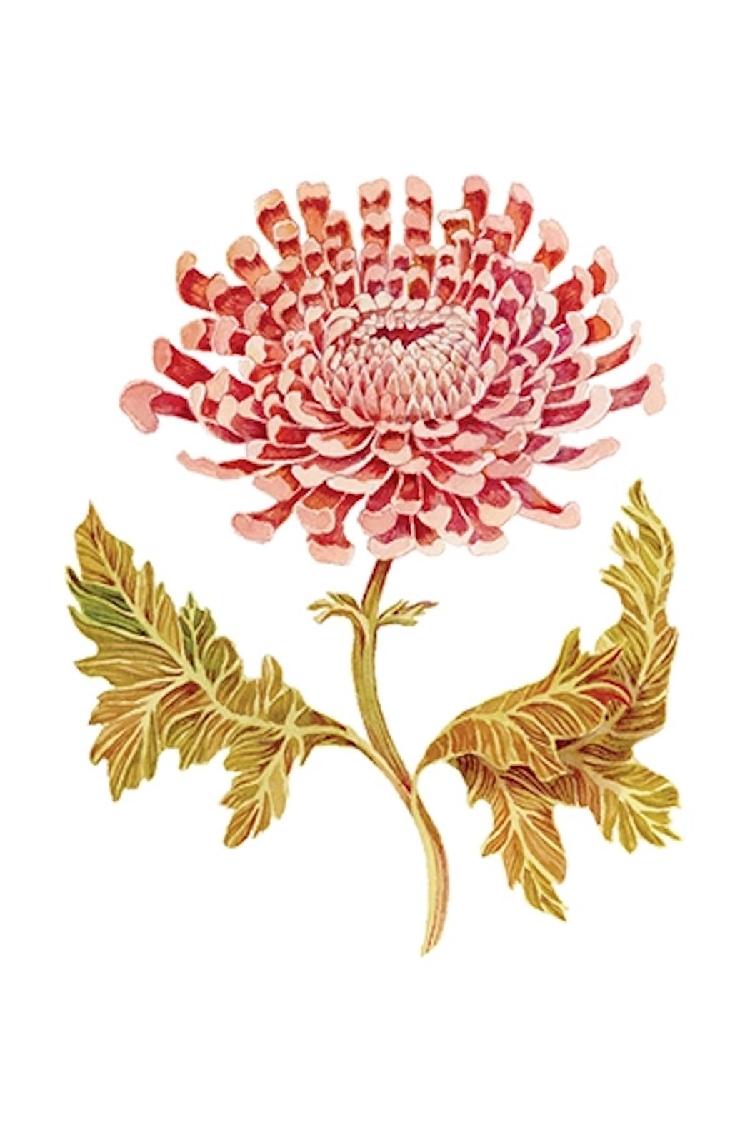 This fine art print features the delicate grace of a chrysanthemum painted in venetian red.