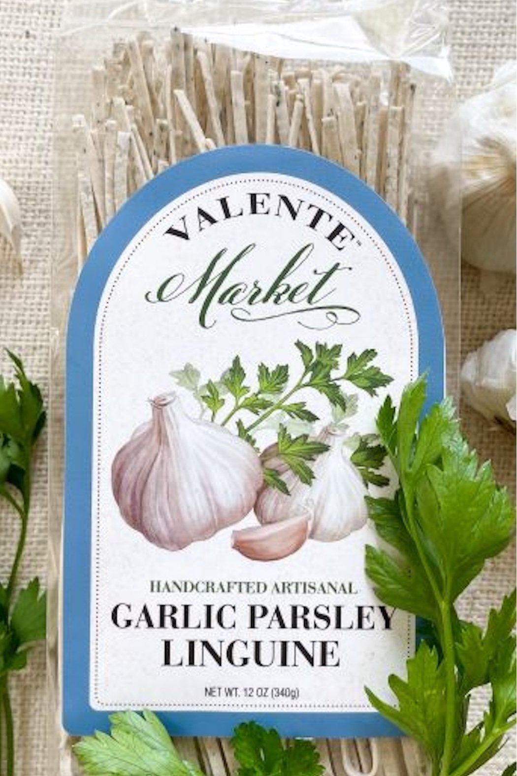 Garlic Parsley Linguine makes "linguine with clam sauce" a snap. Toss pasta with fresh steamed clams. Ingredients: unbleached wheat flour, dried parsley, dried garlic and water Each 12 oz. bag is hand packed in clear "stand on shelf" bag, and recipe on the back of the package. Recipe on package: Smoked Salmon Pasta Salad
