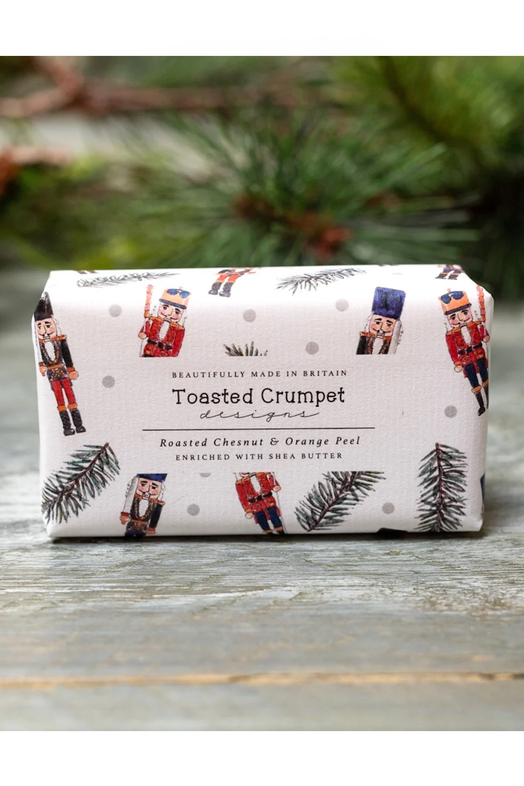 Fragrance Notes: This roasted chestnut& orange peel soap is bursting with the aromas of citrus, nutmeg cinnamon & clove. A festive warm luxurious fragrance that oozes decadence.