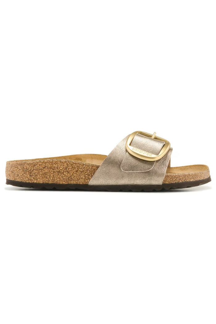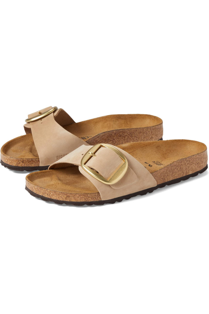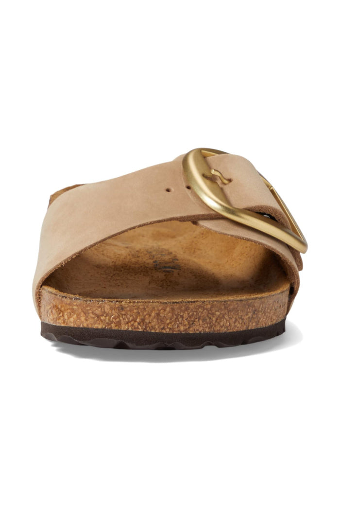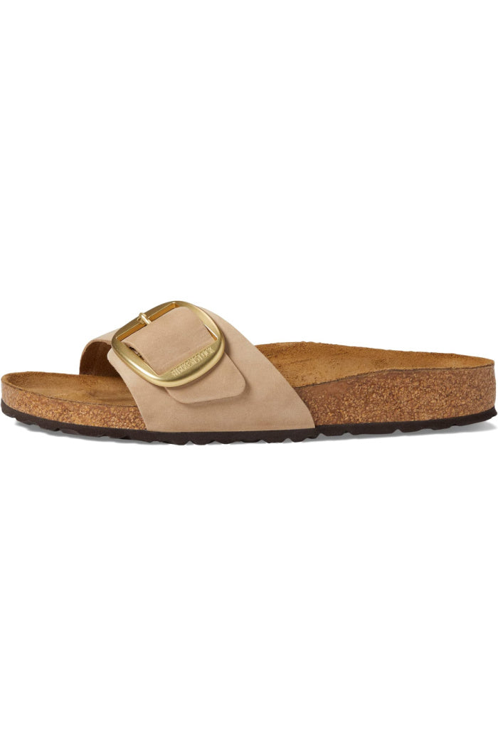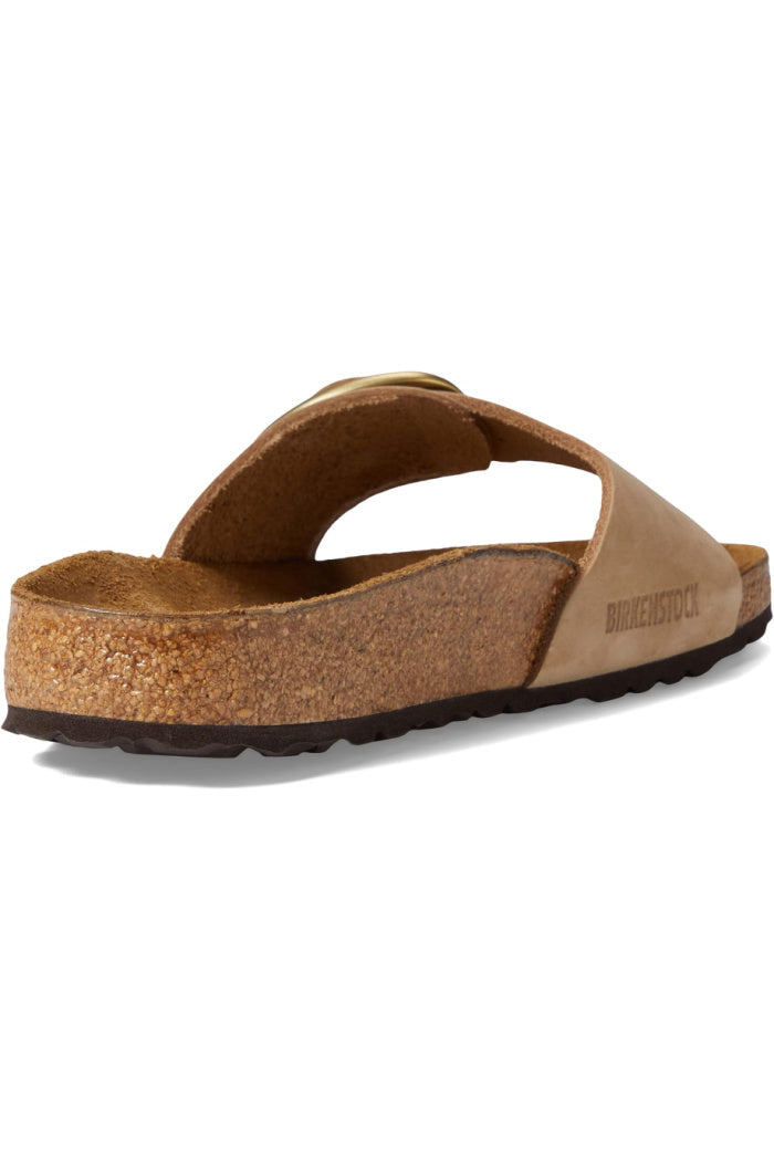 trap, a buckle and a contoured cork footbed are masterfully combined to create the original Birkenstock sandal - the Madrid. An iconic slide with amplified buckle accent. Shown in oiled nubuck leather.