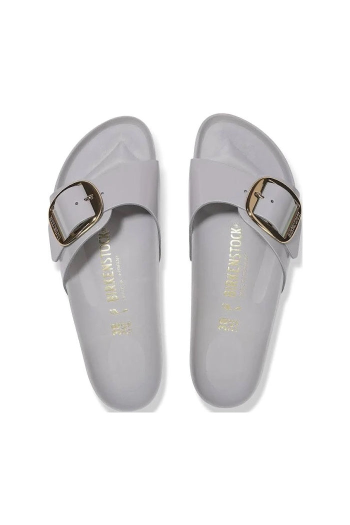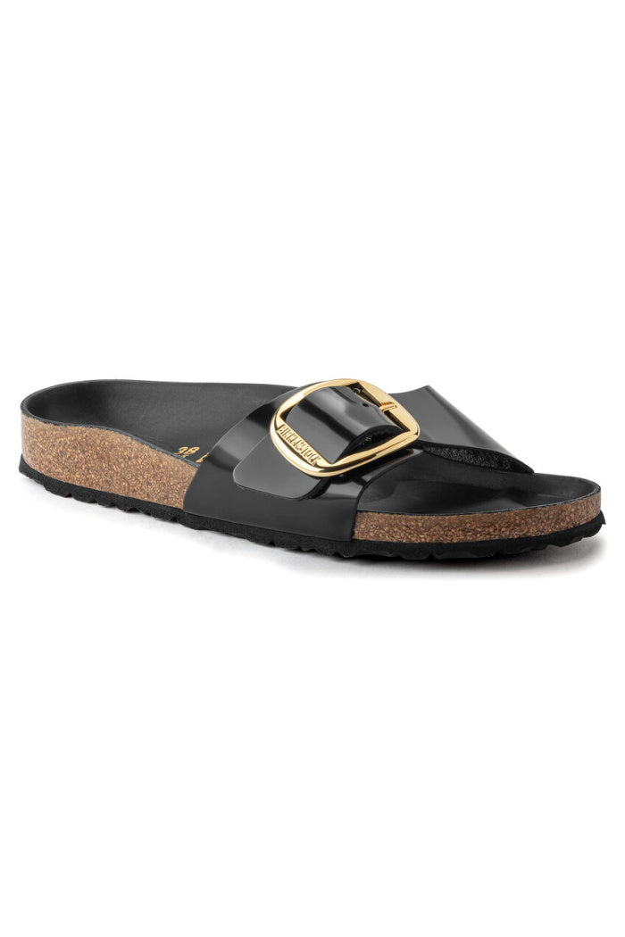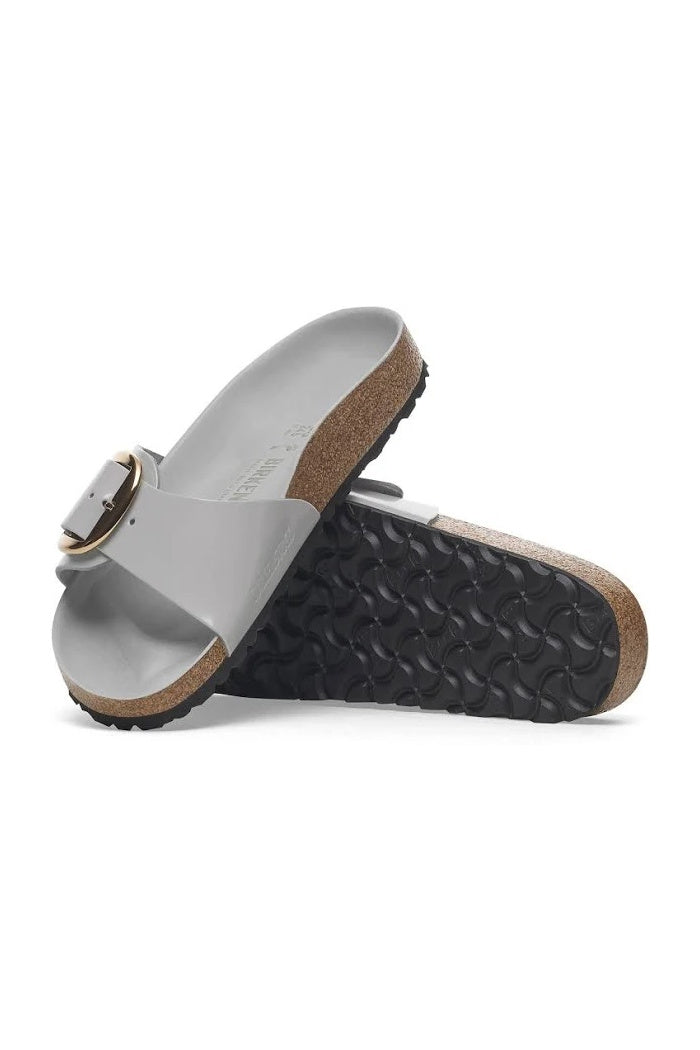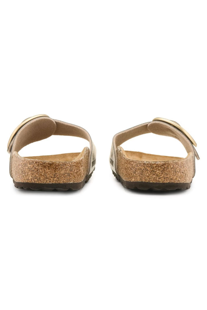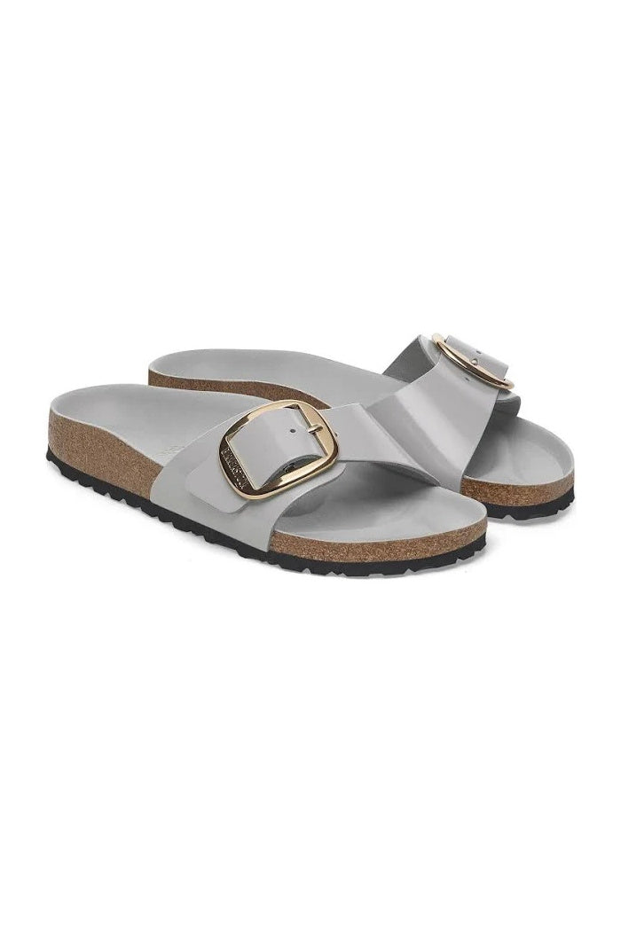 trap, a buckle and a contoured cork footbed are masterfully combined to create the original Birkenstock sandal - the Madrid. An iconic slide with amplified buckle accent. Shown in oiled nubuck leather.