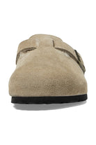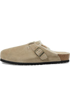 The Boston Shearling - Suede from Birkenstock® clog, made cozy for the colder months. Classic suede lends a velvety feel that continues on the inside. The style is fully lined in genuine shearling, right down to the original contoured footbed. A soft, supportive landing every time.