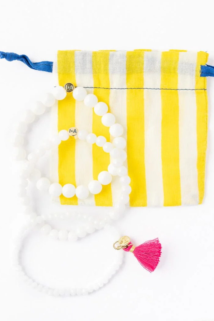 The Addison Bracelet Sets are a funky take on monochrome! Comes with a cute drawstring bag for easy gifting.