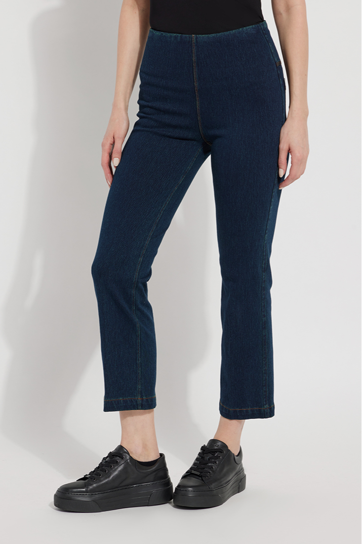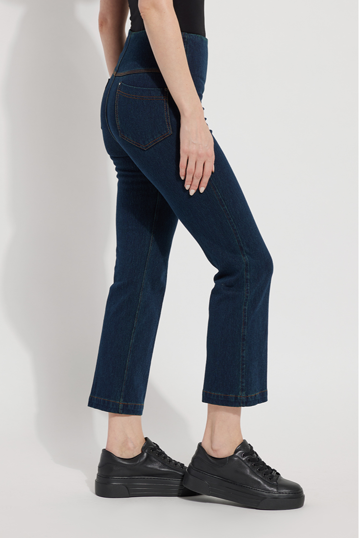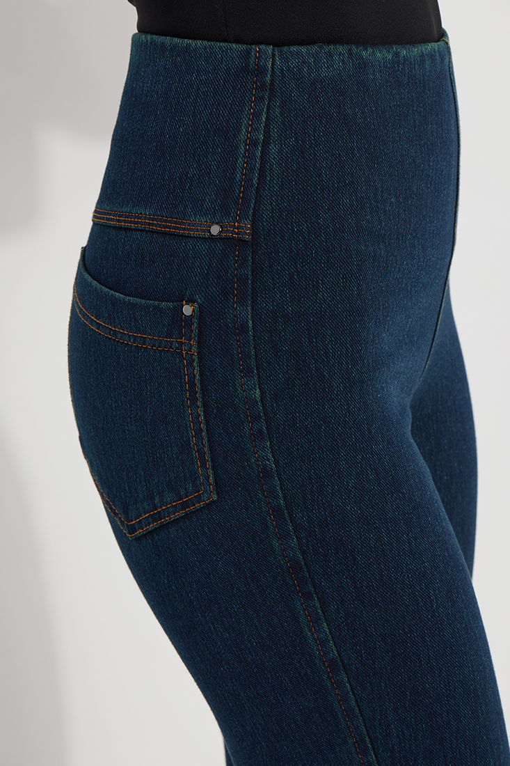 By customer request, we introduce the Baby Bootcut Denim in a shorter, 27" inseam. With a full length fit under 5'7" and perfectly cropped at 5'8"+, the Baby Bootcut (27" Inseam) offers a concealed patented waistband, back patch pockets with metal grommets and anatomical seaming that lifts and contours. The Baby Bootcut Denim (27" Inseam) jean skims the hips and thighs before falling into a slightly flared bootcut hem.