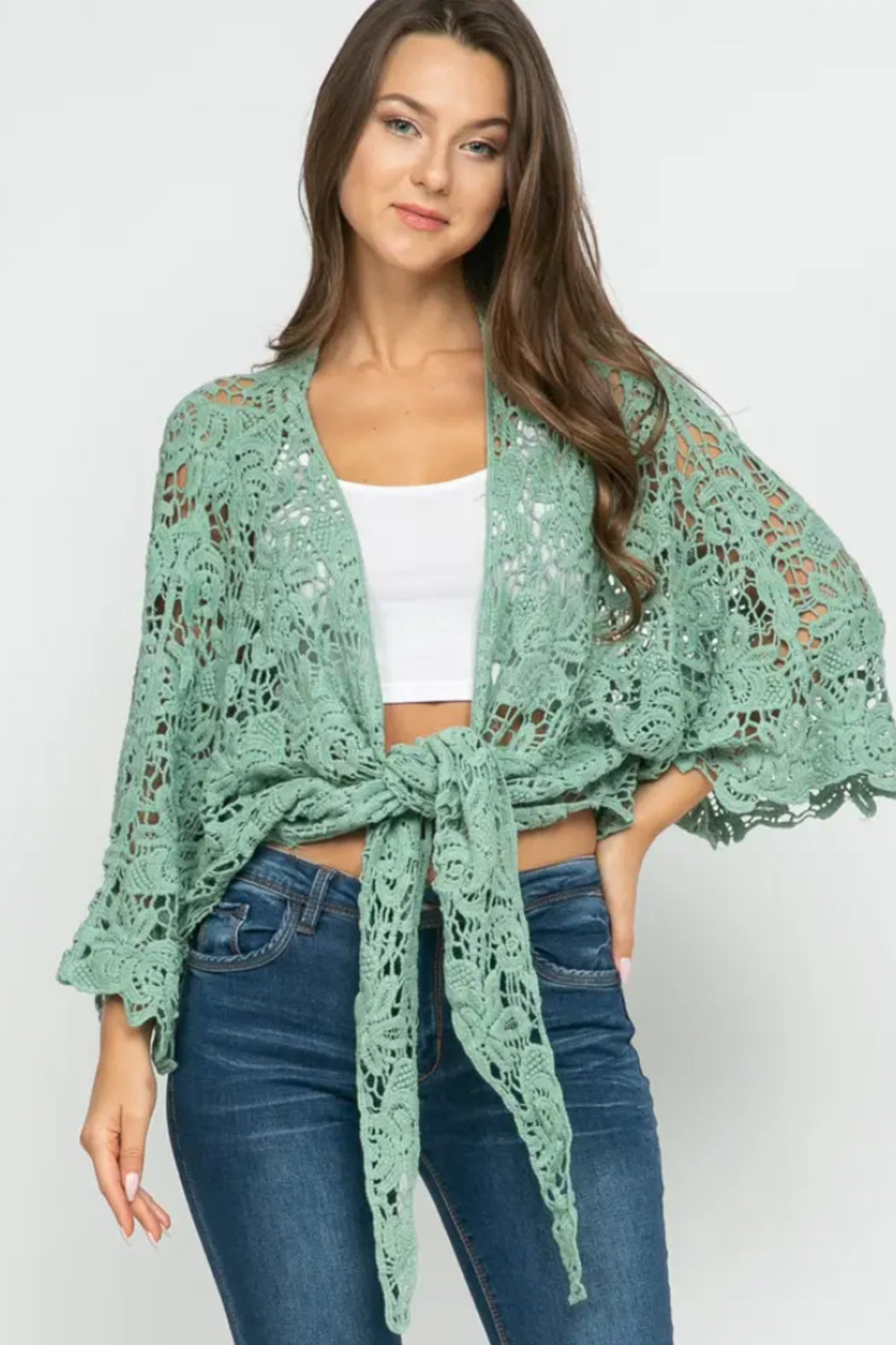 Crochet Celadon Kimono Wrap. Very feminine and beautiful!