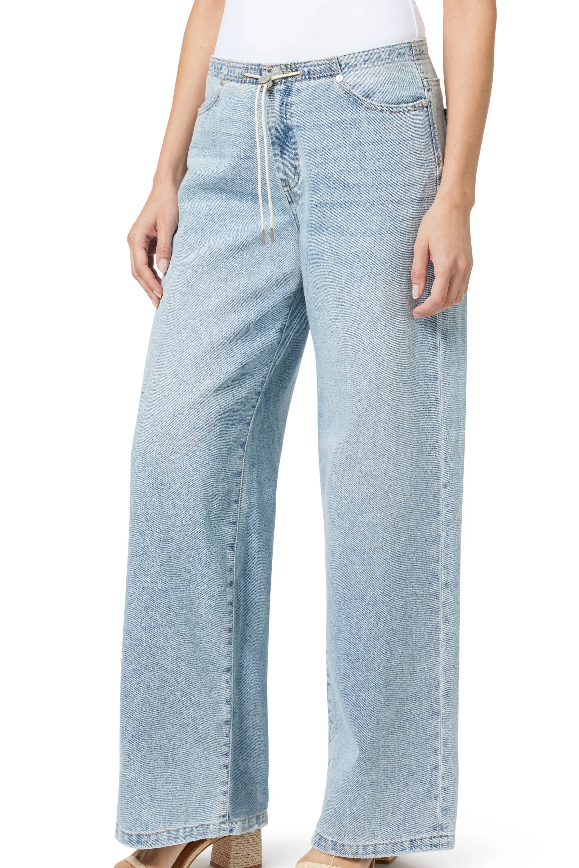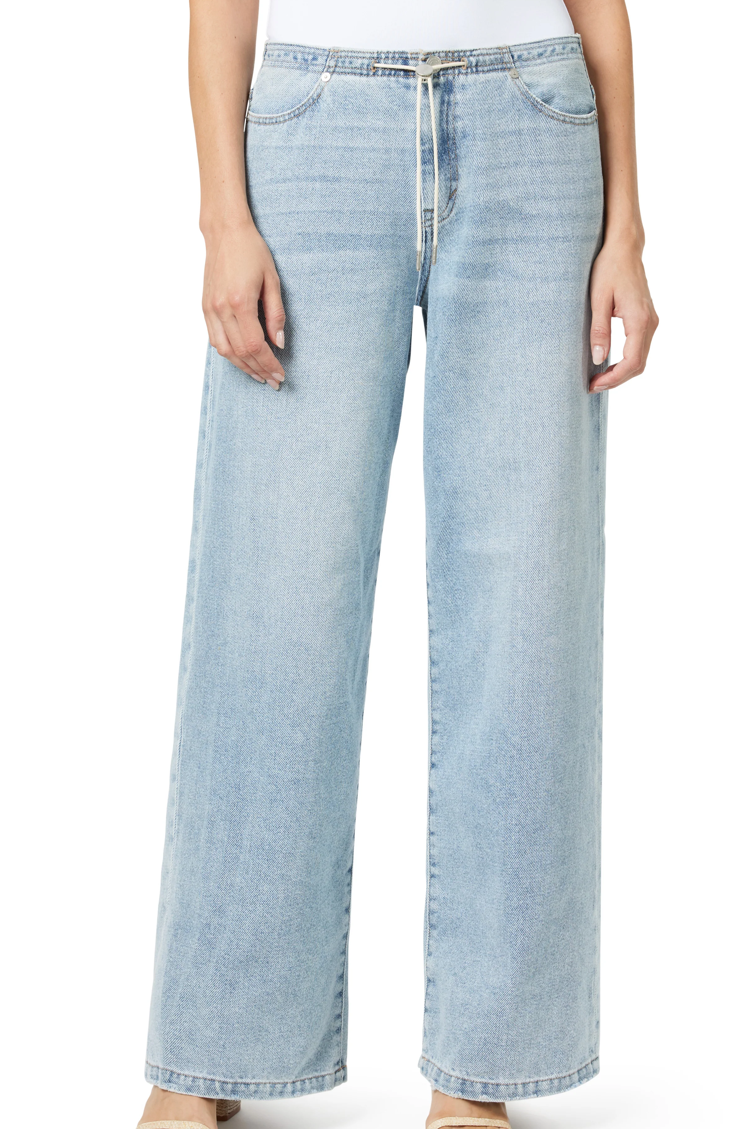 These light-wash wide-leg jeans redefine laid-back luxury with a modern twist. Designed for effortless style, they feature a relaxed, flowy silhouette with a subtle vintage fade. The adjustable drawstring detail at the waist adds a touch of casual-cool versatility, ensuring the perfect fit. Pair them with a fitted top and heels for a chic, balanced look or keep it casual with sneakers and a cropped tee. A must-have staple for your everyday wardrobe!
