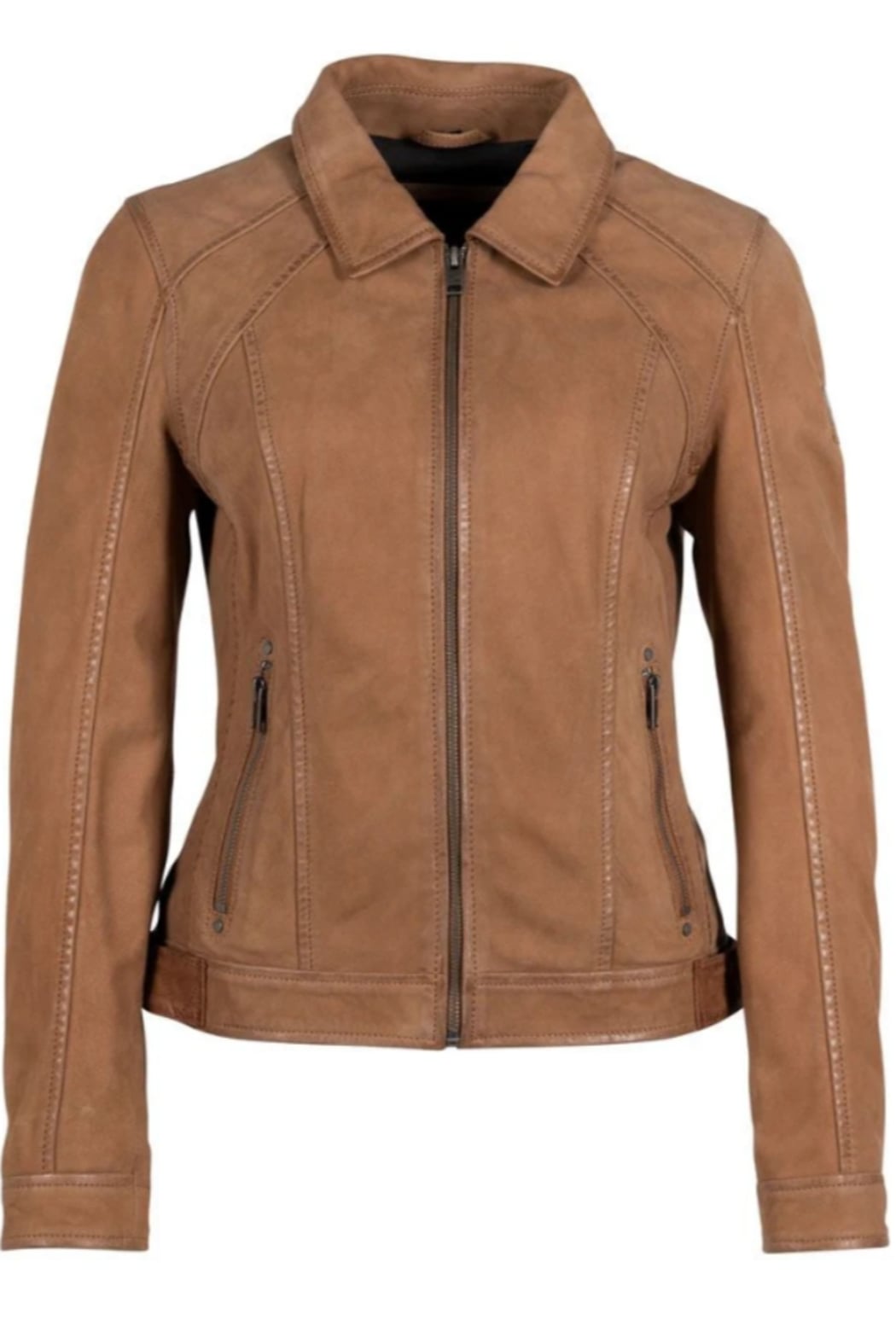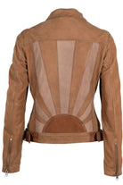 The Sunny RF Leather Jacket is a cropped, waist-length leather jacket with a striking sunburst suede-inset back panel that elevates its silhouette. Soft, broken-in leather and contrast panels give this jacket a lived-in bohemian edge perfect for layering. Mauritius designed it with classic moto details and a fitted shape that flatters the waist. Wear it over dresses or jeans for an easy weekend-to-evening look.