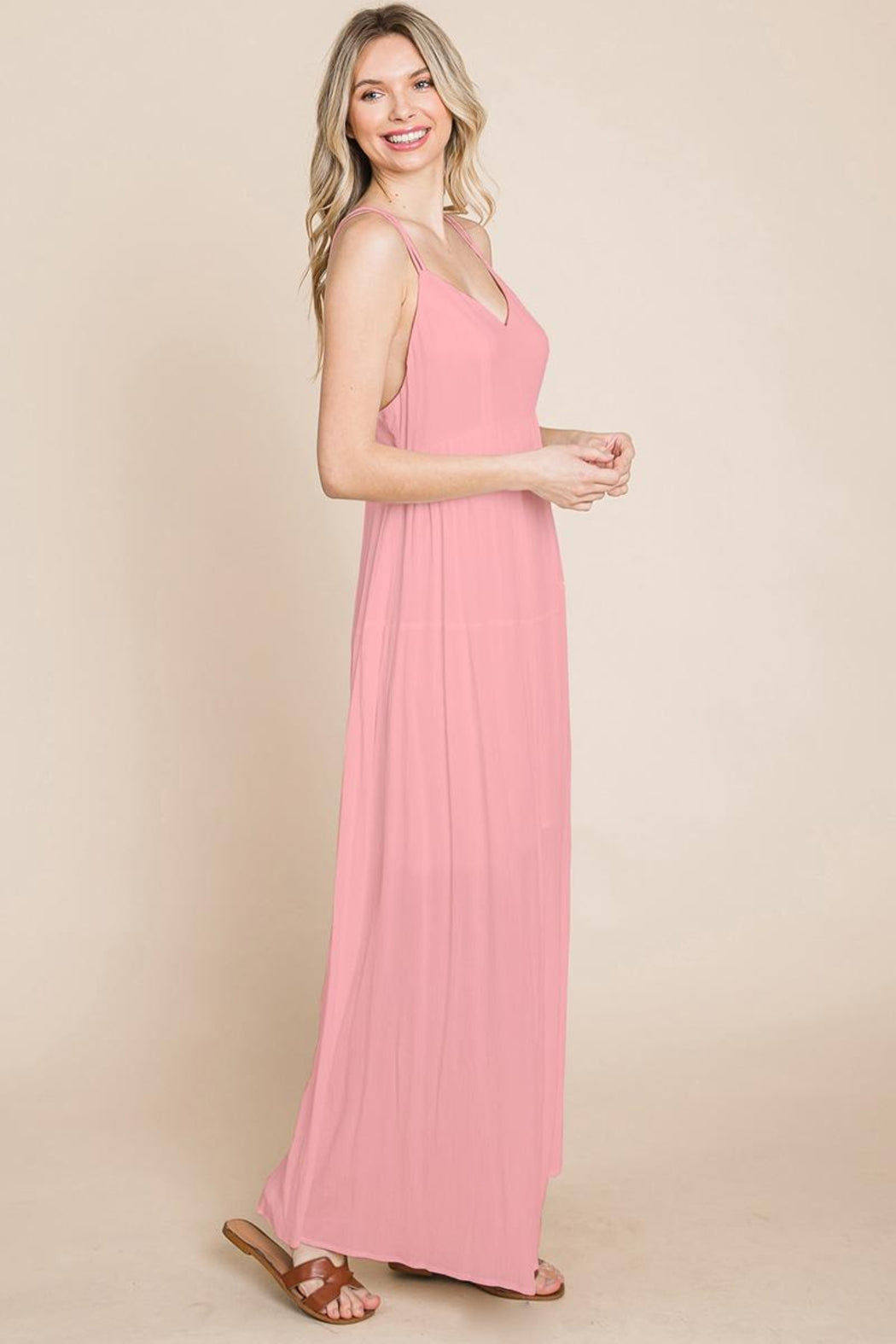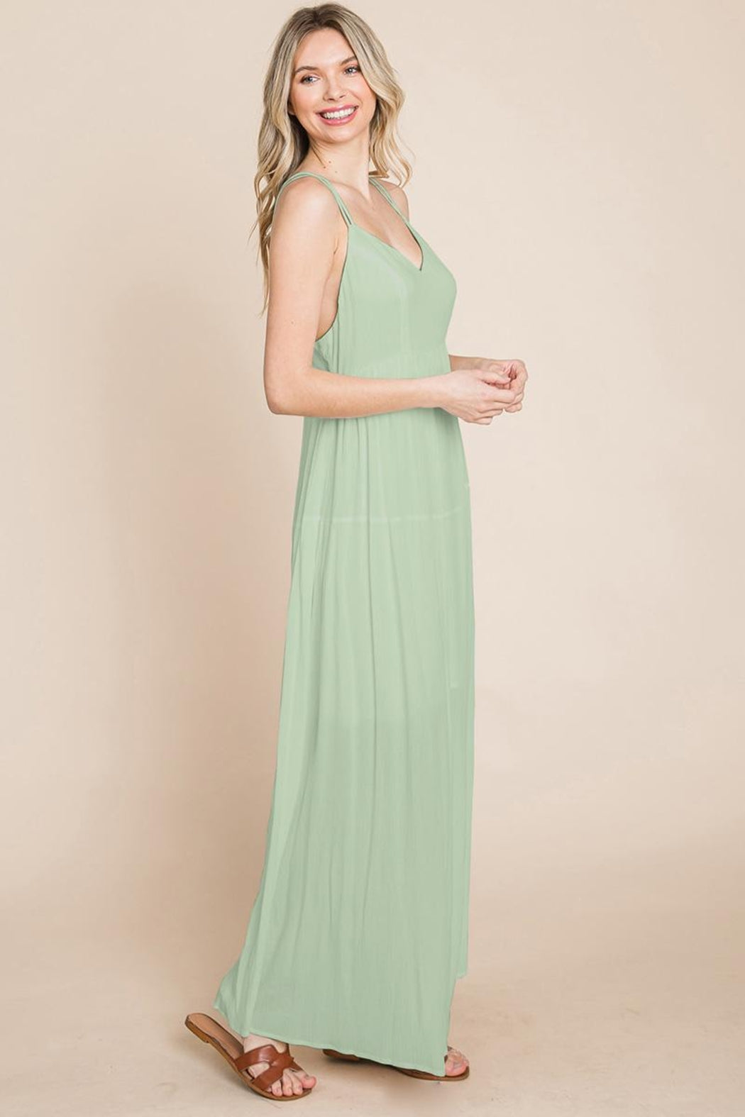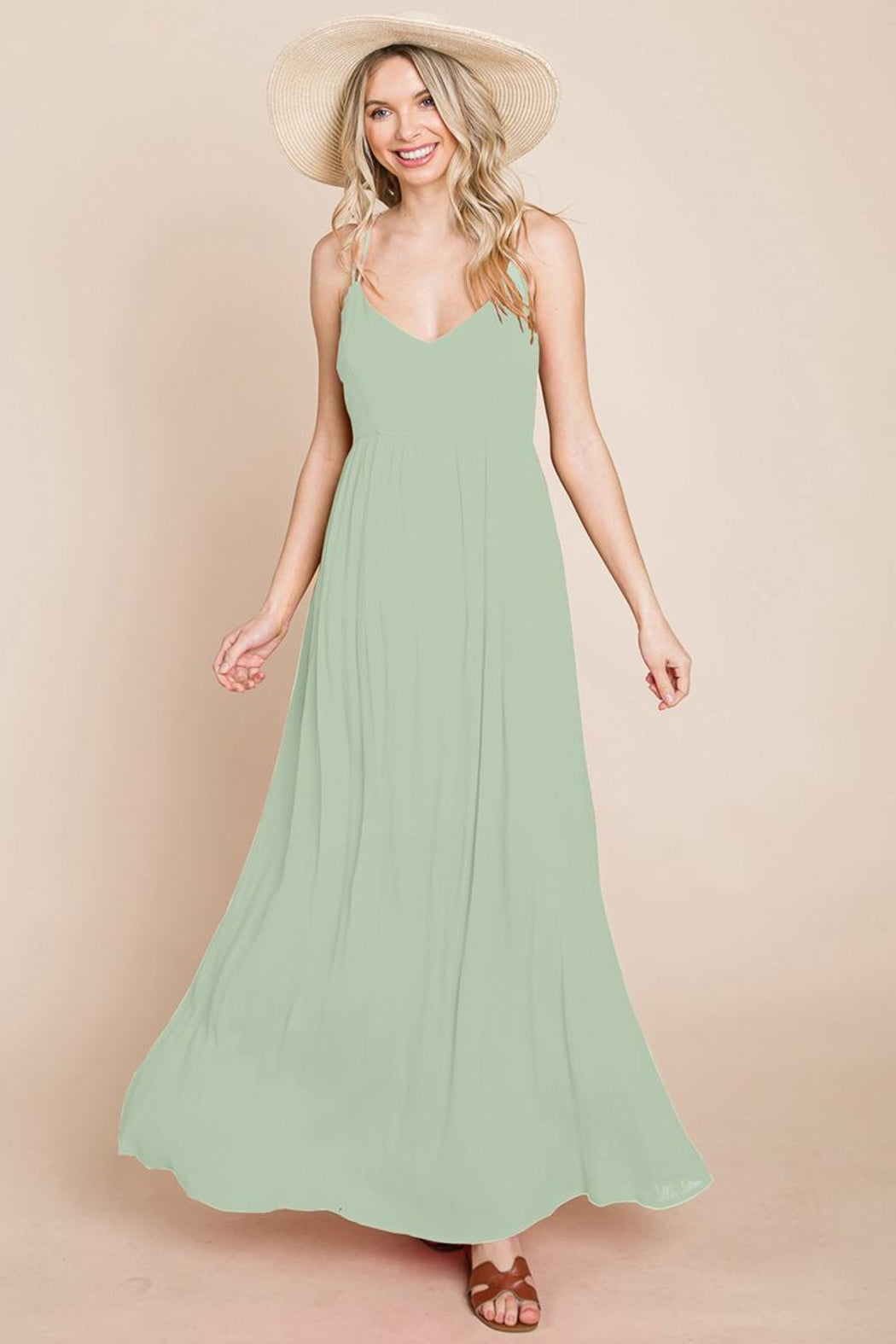 Features: High Waist, A line, adjustable spaghetti strap, all color half lined, Maxi Length, Criss Cross Back, crinkled fabric, v neck
