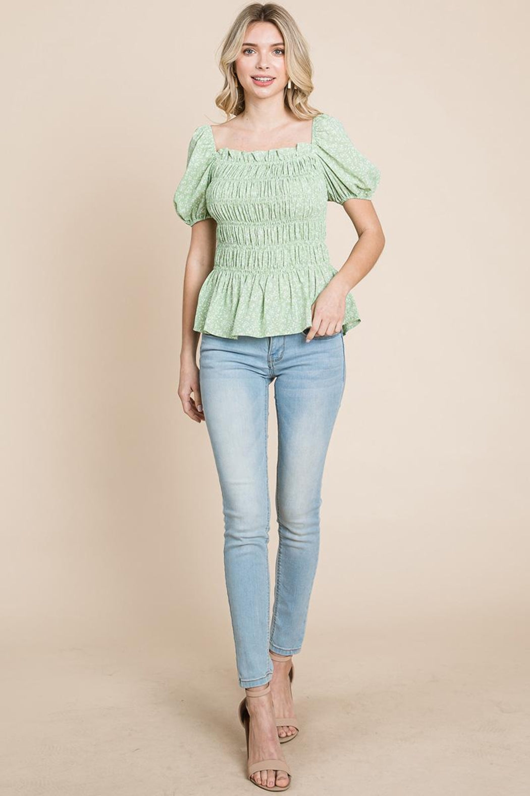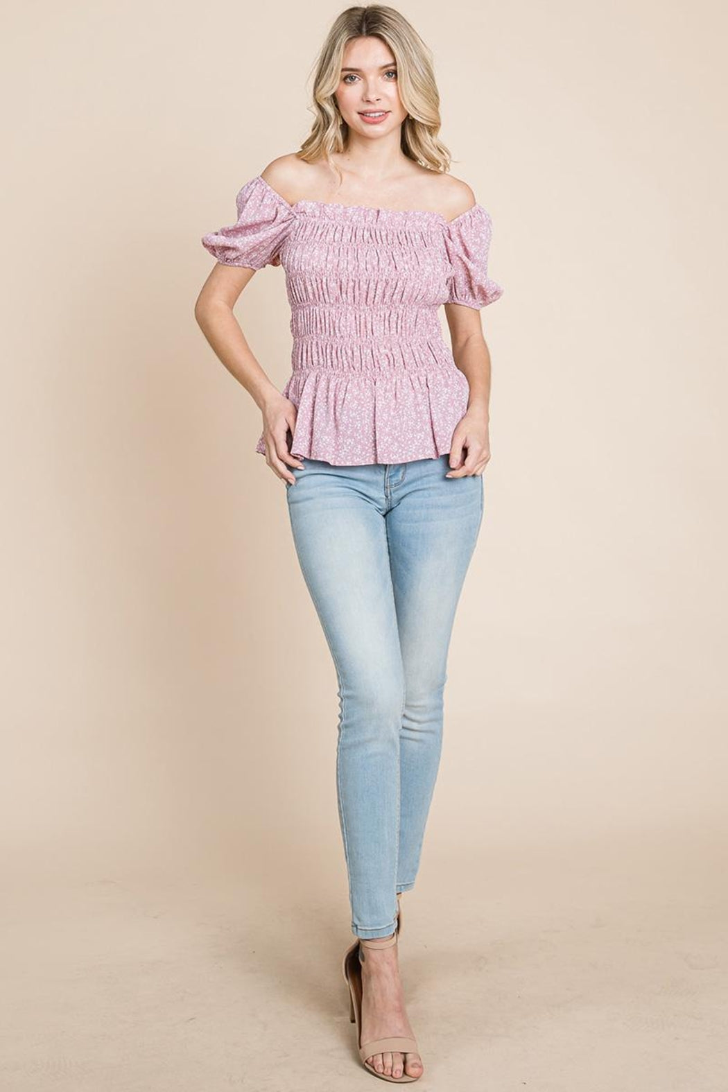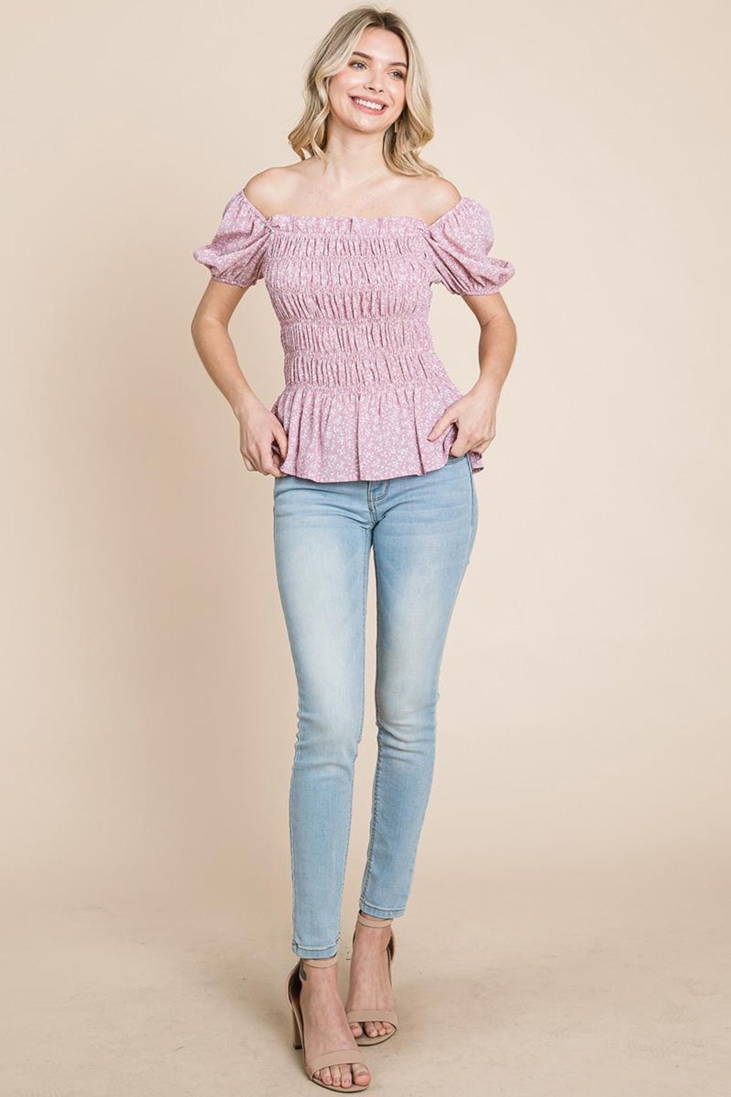 Features: Ditsy Floral Printed, Smocked, Short Sleeve, Off the Shoulder, Square Neck