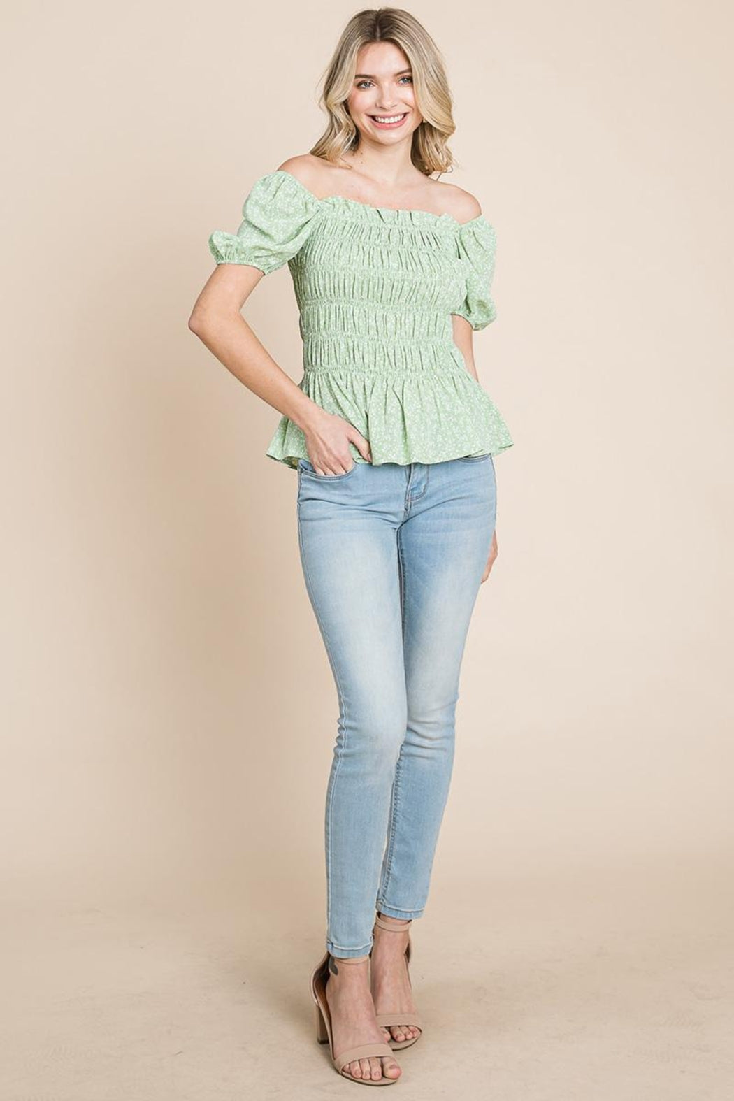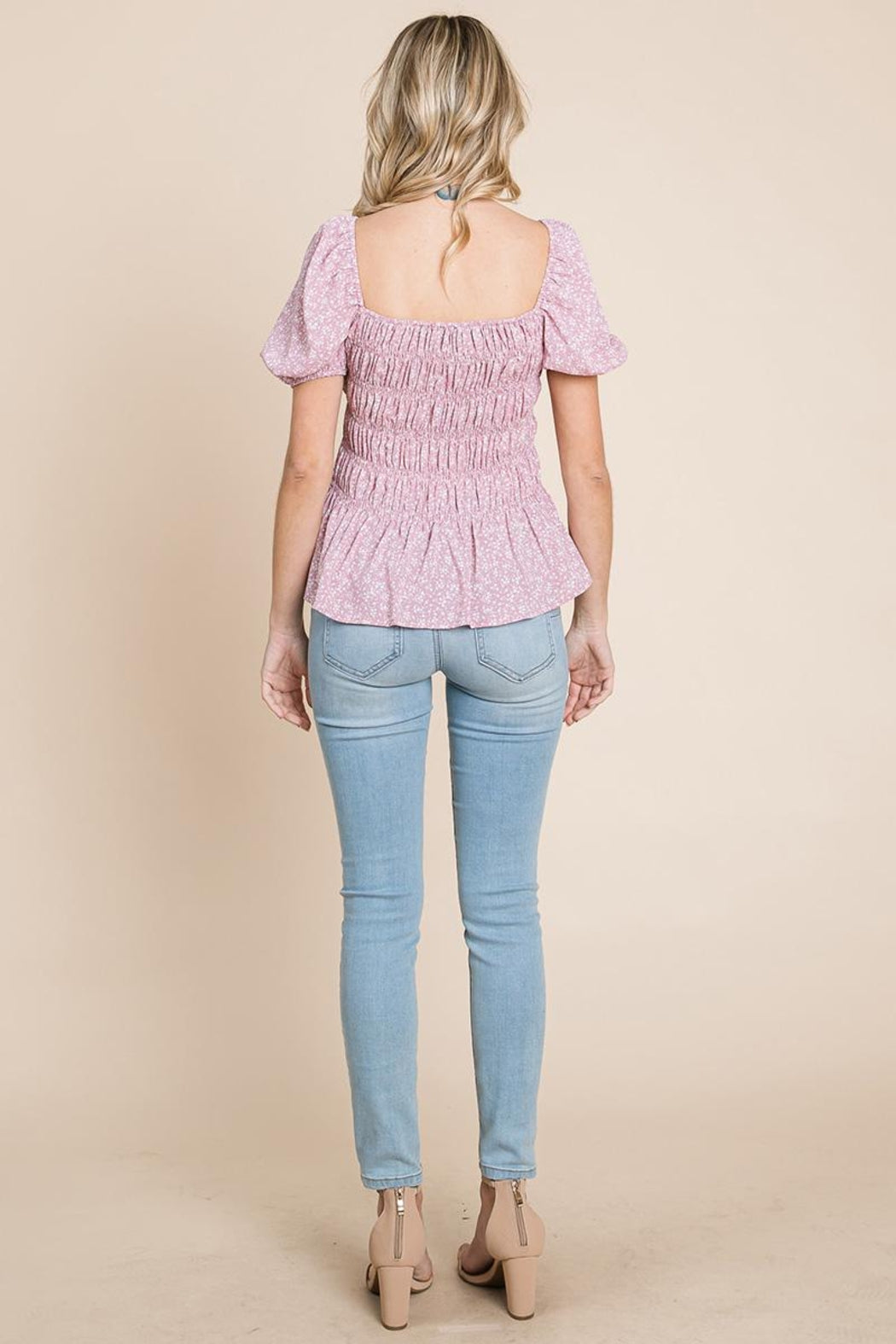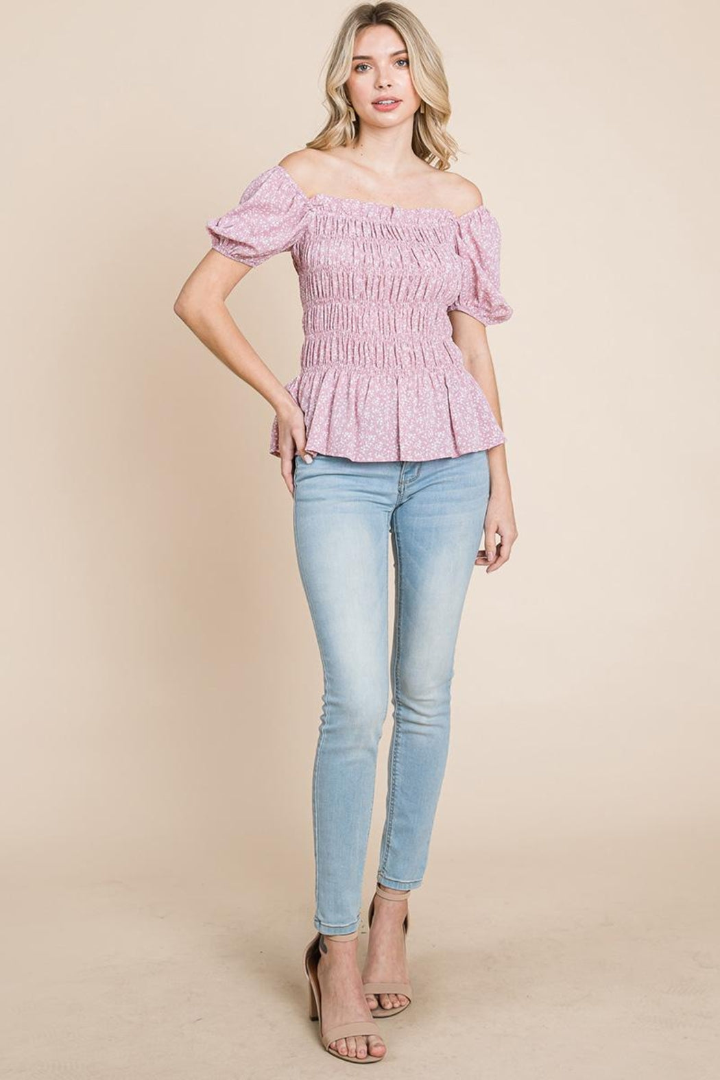 Features: Ditsy Floral Printed, Smocked, Short Sleeve, Off the Shoulder, Square Neck