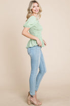 Square Neck Top, Crop Tops, Blouses, Tops for women, Smocked Blouse, Off the shoulder tops, Short Sleeve Tops