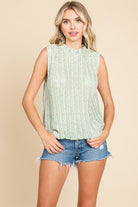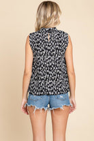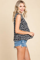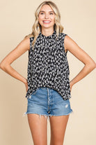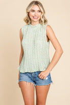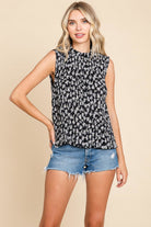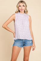 Sleeveless Floral Pleated Shirts Blouse