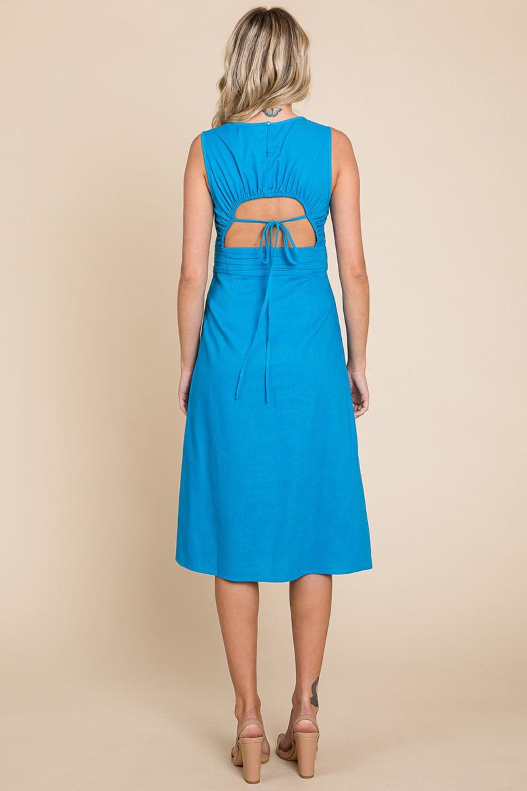 Sleeveless Tied Backless Pleated Midi Linen Dress