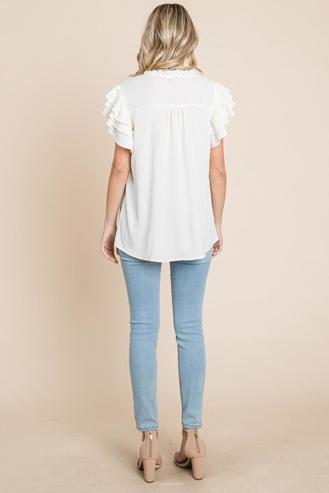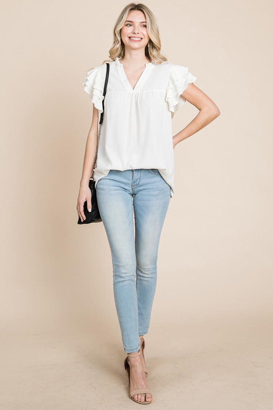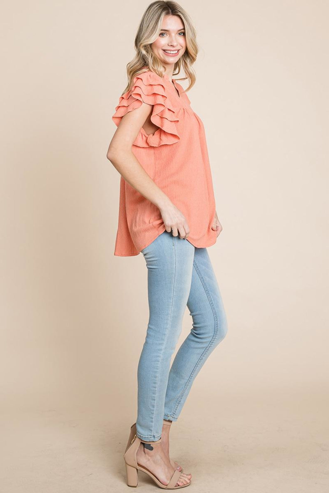 V Neck Ruffle Sleeve Textured Shirts Blouses