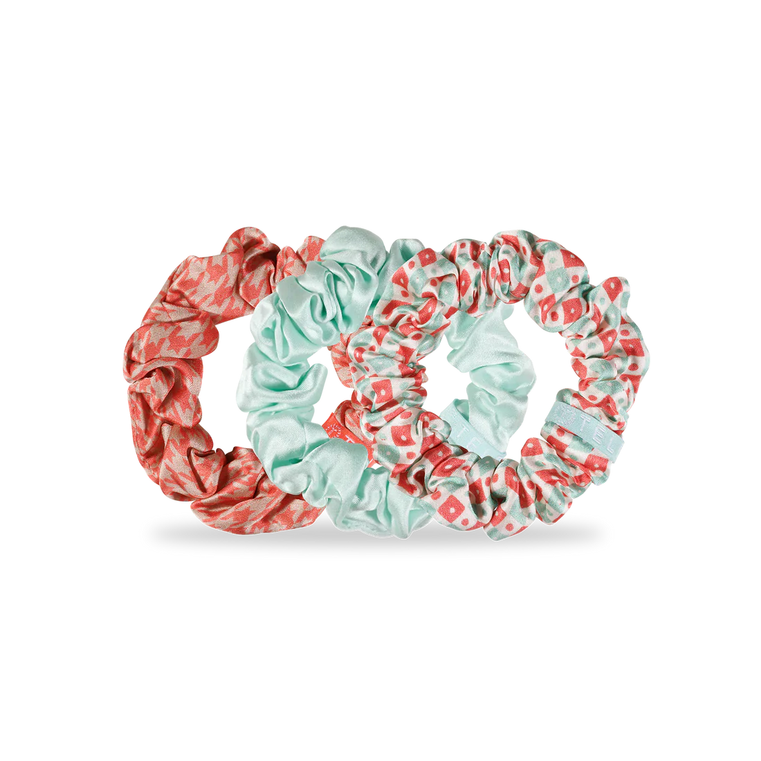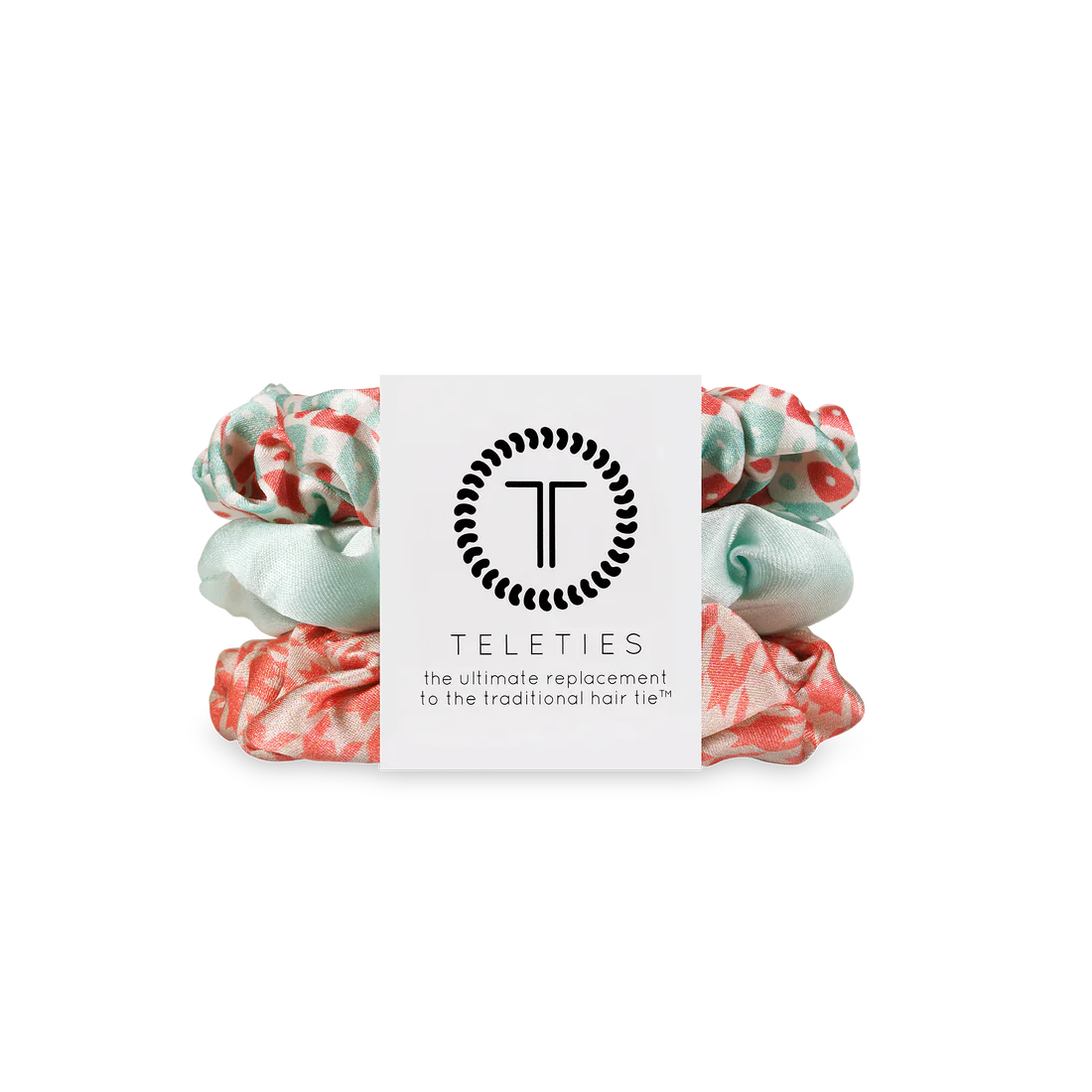 Refresh your look this season with TELETIESlatest collection of Spring Silk Scrunchies. Designed to bring shimmer, shine and color to every one of your Springtime looks. Created with our innovative coil tucked inside of 100% Natural Silk, you’ll be wearing these scrunchies in your hair and on your wrist all year long!