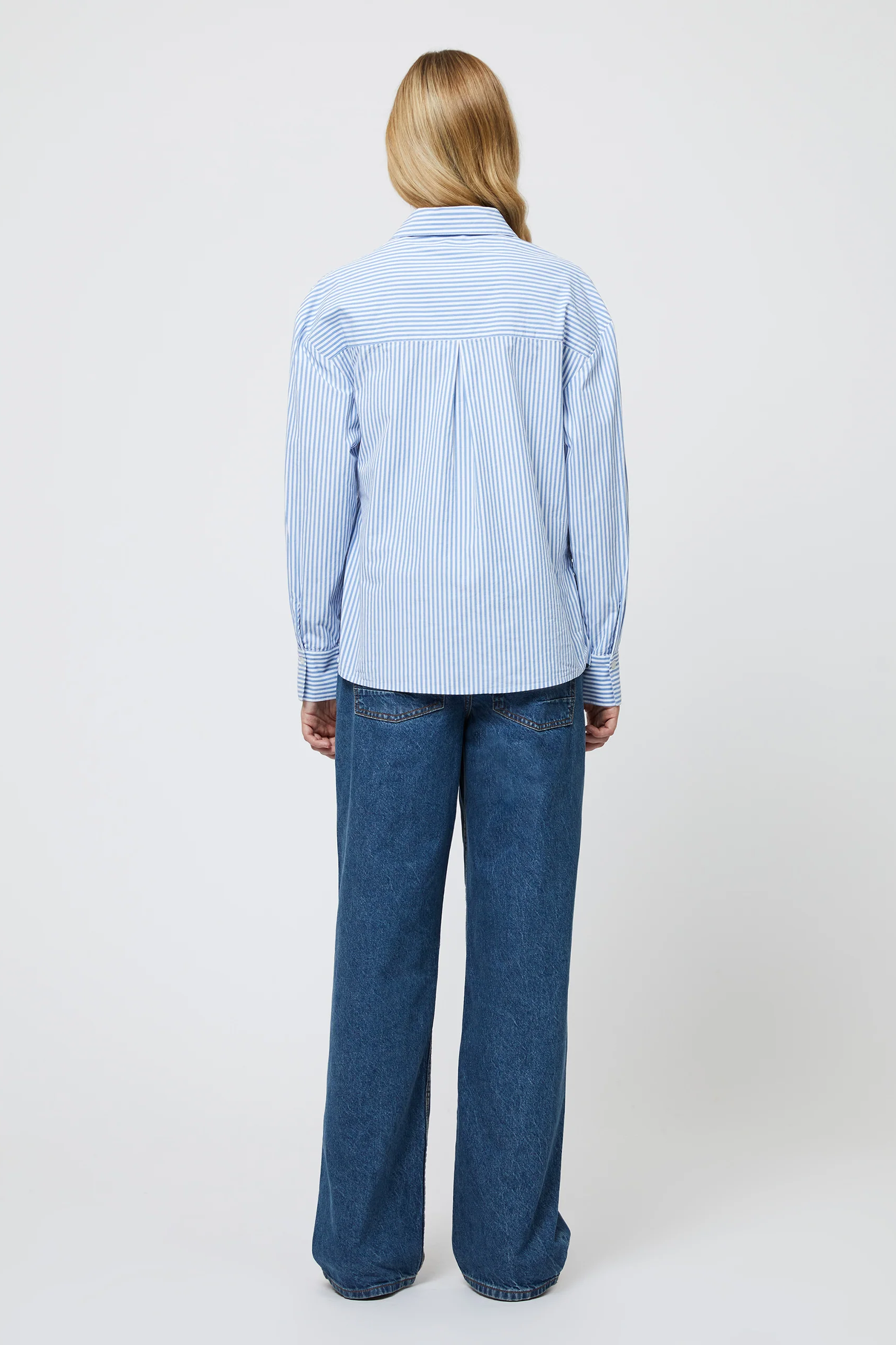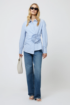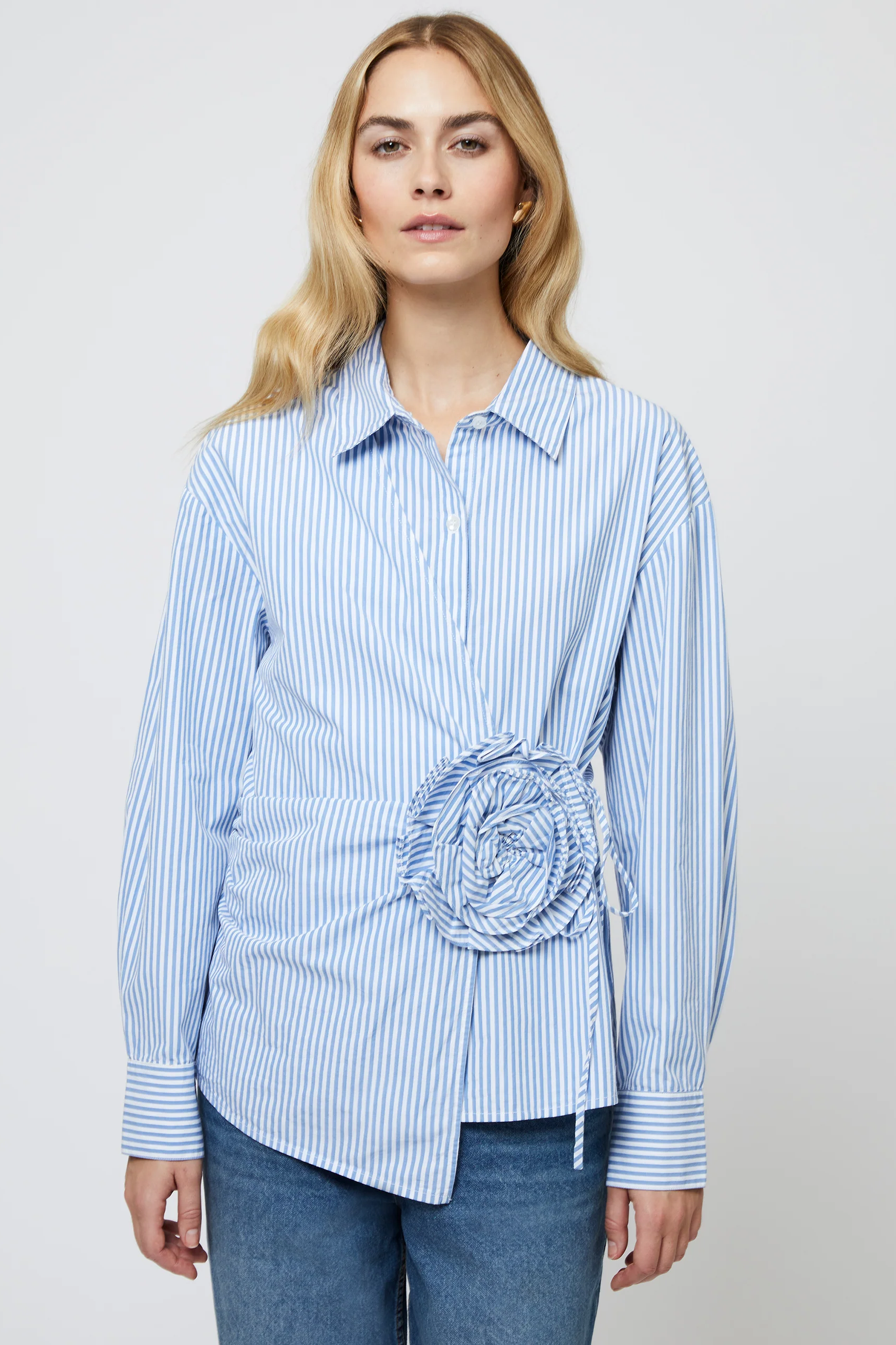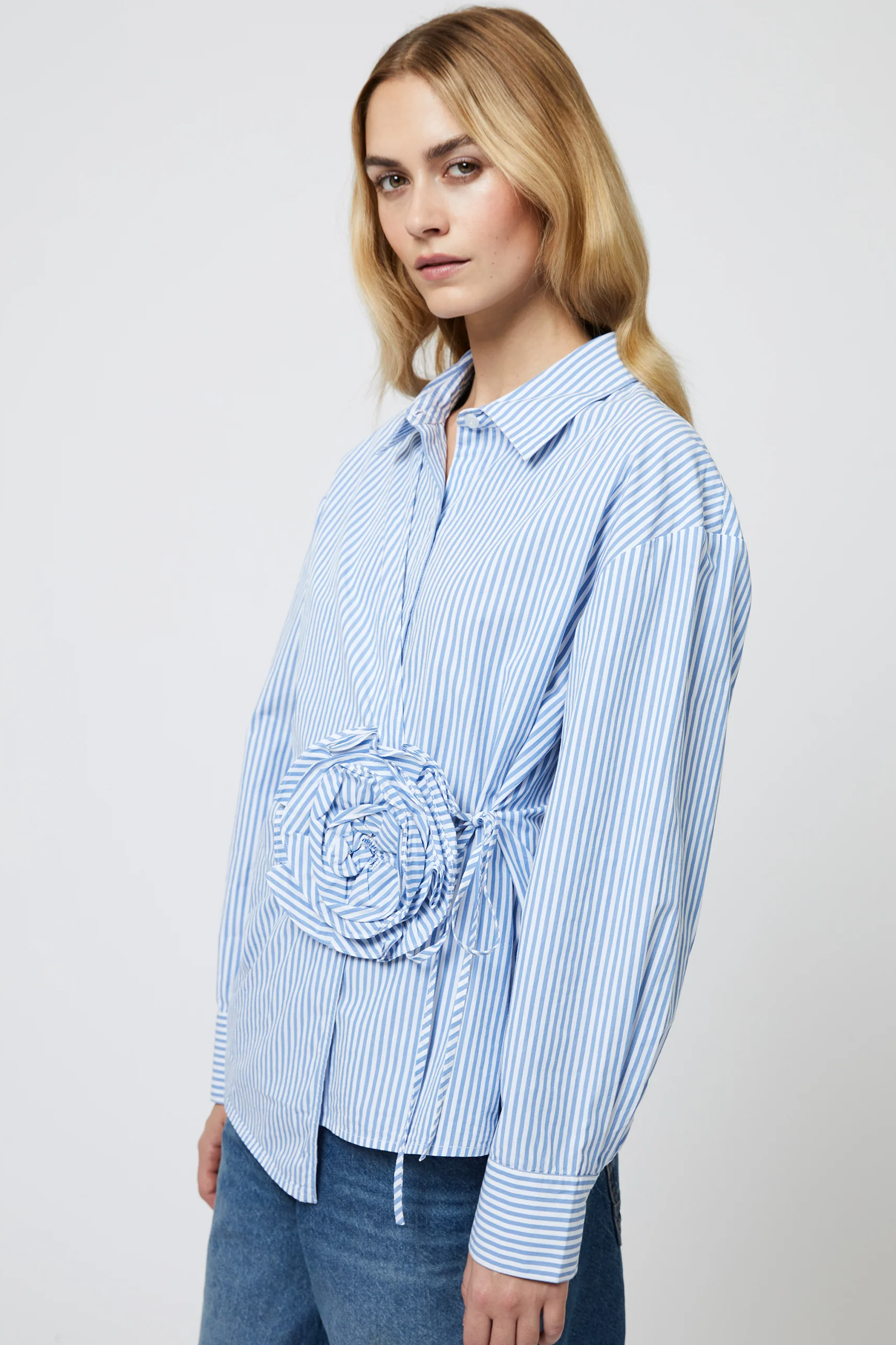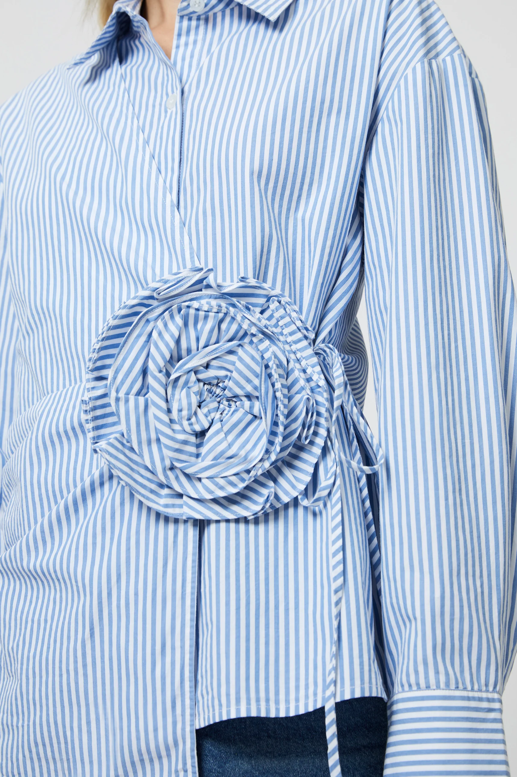 Cambria Cotton Corsage Striped Shirt- Blue/White